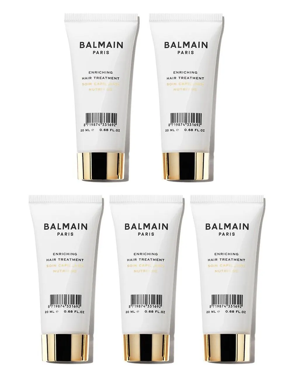 Das 5 Week Enriching Hair Treatment von Balmain Hair Couture wurde entwickelt, um das Haar innerhalb von fünf Wochen zu revitalisieren und ihm ein strahlendes Aussehen zu verleihen. Die mit Seidenprotein und Bernsteinsäure angereicherte Formel hilft, die Haarkutikula zu versiegeln, schenkt Fülle und Elastizität und baut die Haarfaser wieder auf.