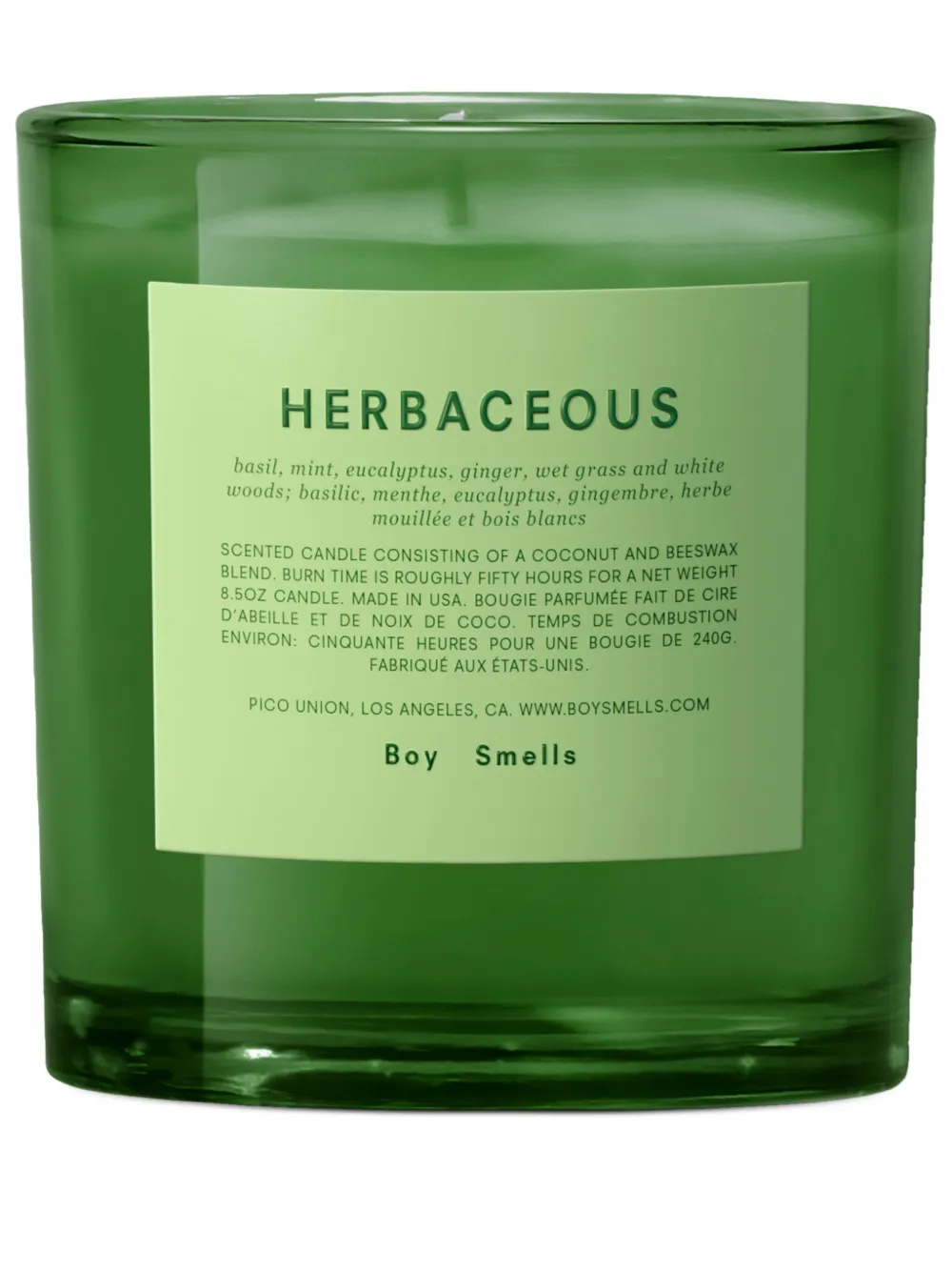 Die Kerze Herbaceous von Boy Smells erinnert an den wilden und würzigen Duft von natürlichen Pflanzen. Basilikumblätter und pfeffrige Minze werden von hohem Gras und anregendem Eukalyptus unterstrichen, während Ingwerwurzel das Aroma in einem erfrischendem Finish erdet.