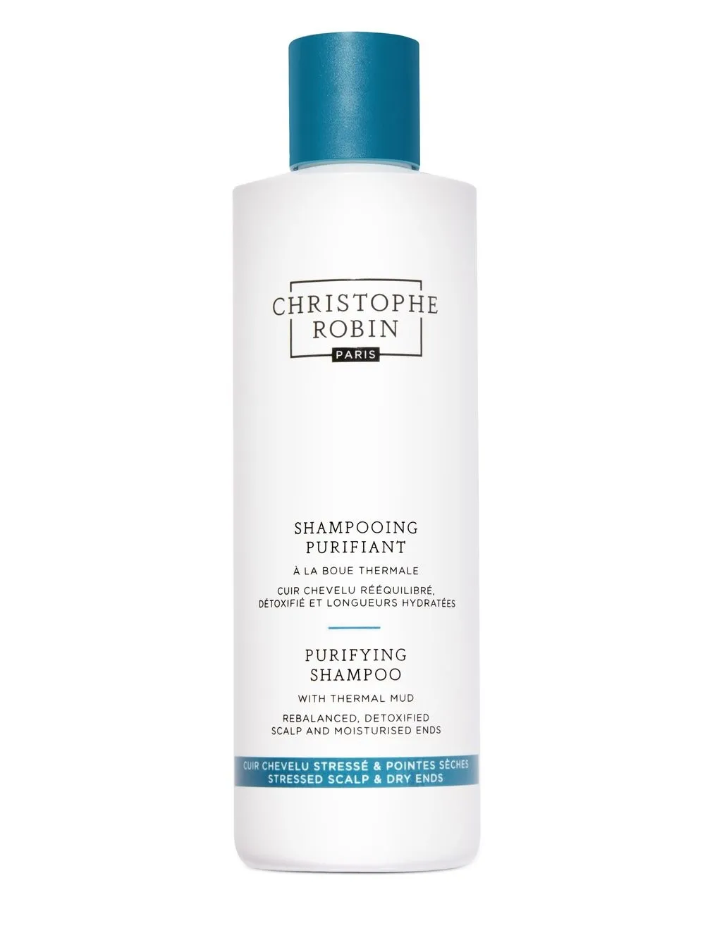 Das Purifying Shampoo with Thermal Mud von Christophe Robin reinigt das Haar und die Kopfhaut gründlich. Mit mineralstoffreichem Thermalschlamm und Rotalgen aus der Ostsee unterstützt das Produkt zudem die natürliche Barrierefunktion der Kopfhaut und schützt sie so vor Umweltschadstoffen.