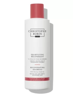 Das Regenerating Shampoo with Prickly Pear Oil von Christophe Robin reinigt das Haar sanft und hinterlässt ein gepflegtes Gefühl. Das enthaltene Kaktusfeigenöl, das reich an Omega 6 und 9 sowie Provitamin B5 ist, lässt das Haar glatter und strahlender wirken.