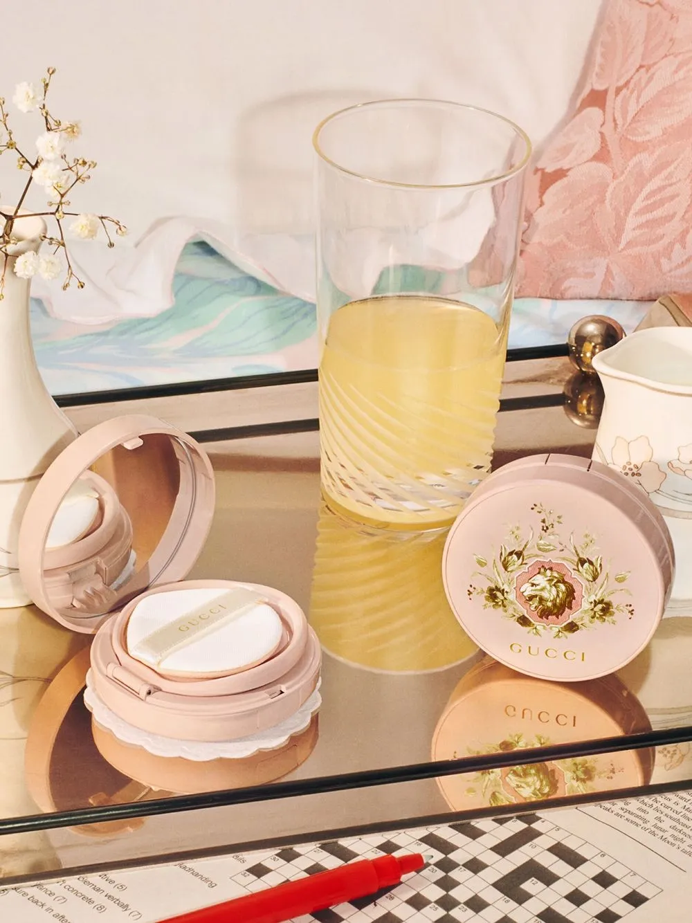 Gucci Beauty Cushion De Beauté ist eine leuchtende und feuchtigkeitsspendende Foundation. Die leichte und variable Formel versorgt die Haut bis zu 24 Stunden lang mit Feuchtigkeit und schützt mit LSF 22.