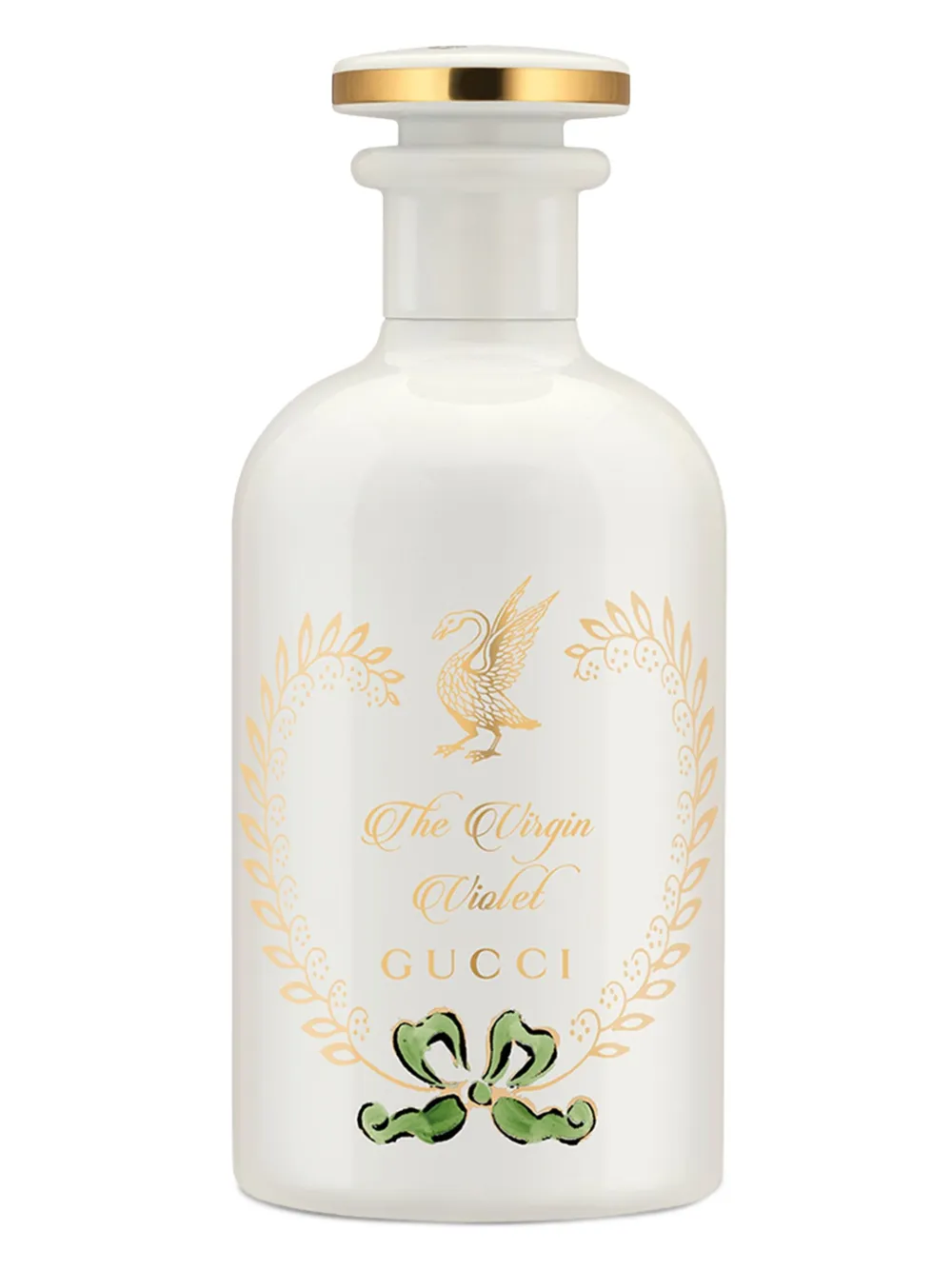 Für die Kreation des Eau de Parfums The Virgin Violet von Gucci wurde ein Schwan erdacht. Der zarte, anmutige Schwan mit den weichen weißen Federn wird in einer Komposition aus Moschus, Veilchenblättern und Irisblüten umgesetzt.