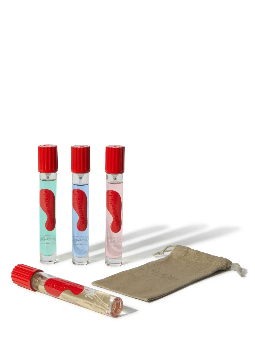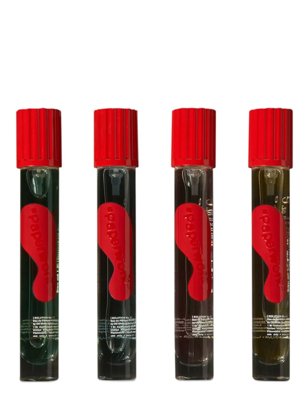 Dieses Discovery-Set von Off-White Beauty umfasst vier Solution-Düfte in Reisegröße in einer Logo-Box mit Schutzbeutel. Solution No. 1 ist ein Alltagsduft mit Noten aus Ho-Holz und Patschuli, während Solution No. 2 die Frische von Mandarinenblättern mit der Holzigkeit aus Vetiver und Zedernholz vereinigt. Solution No. 3 ist eine moderne Interpretation klassischer Rosendüfte. Solution No. 4 mit Noten aus Eukalyptus, Holz und Leder steht für die Verbindung von Natur und Stadt.