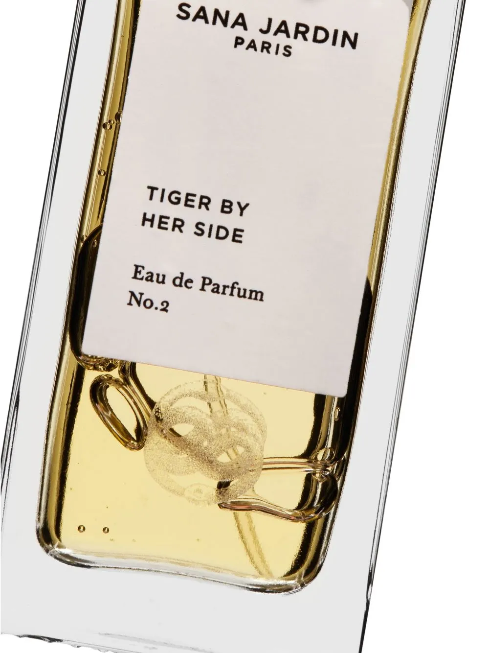 Das Tiger By Her Side Eau de Parfum von Sana Jardin verbindet einen Amber-Akkord mit Vanille, Koriandersamen und Zimt, der schließlich von einer schwelenden Basis aus Patchouli und Weihrauch geerdet wird.