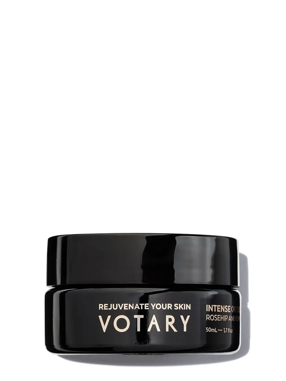 Die Votary Intense Overnight Mask ist eine beruhigendes und pflegendes Treatment, das der Haut ein strahlendes Aussehen verleiht. Die pflanzlichen Öle, gepaart mit Hyaluronsäure, können dazu beitragen, dass sich die Haut weicher und glatter anfühlt. Der Duft kombiniert Rose, Lavendel und Neroli, um die Haut zu beruhigen und auf den Schlaf vorzubereiten.