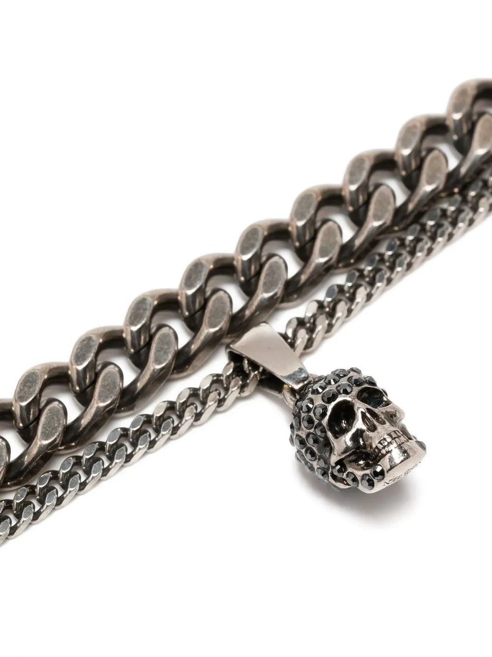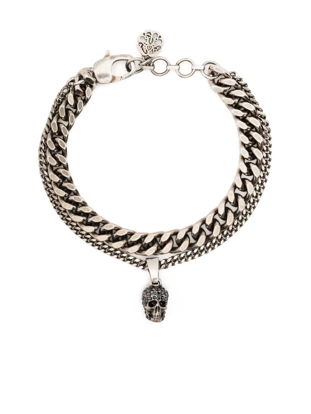 Silber, Messing, mehrsträngiges Design, Totenkopf-Anhänger, Spangenverschluss.