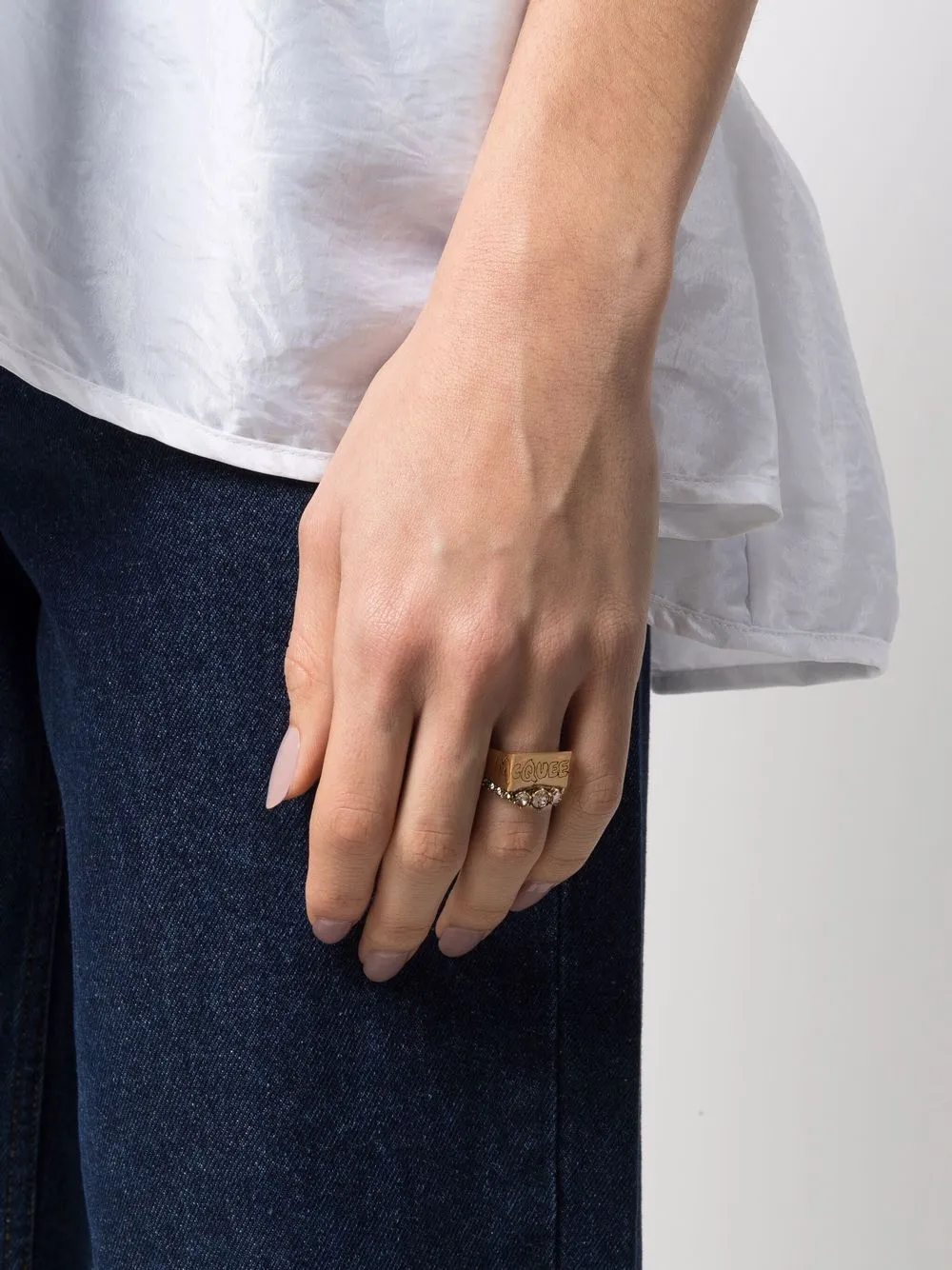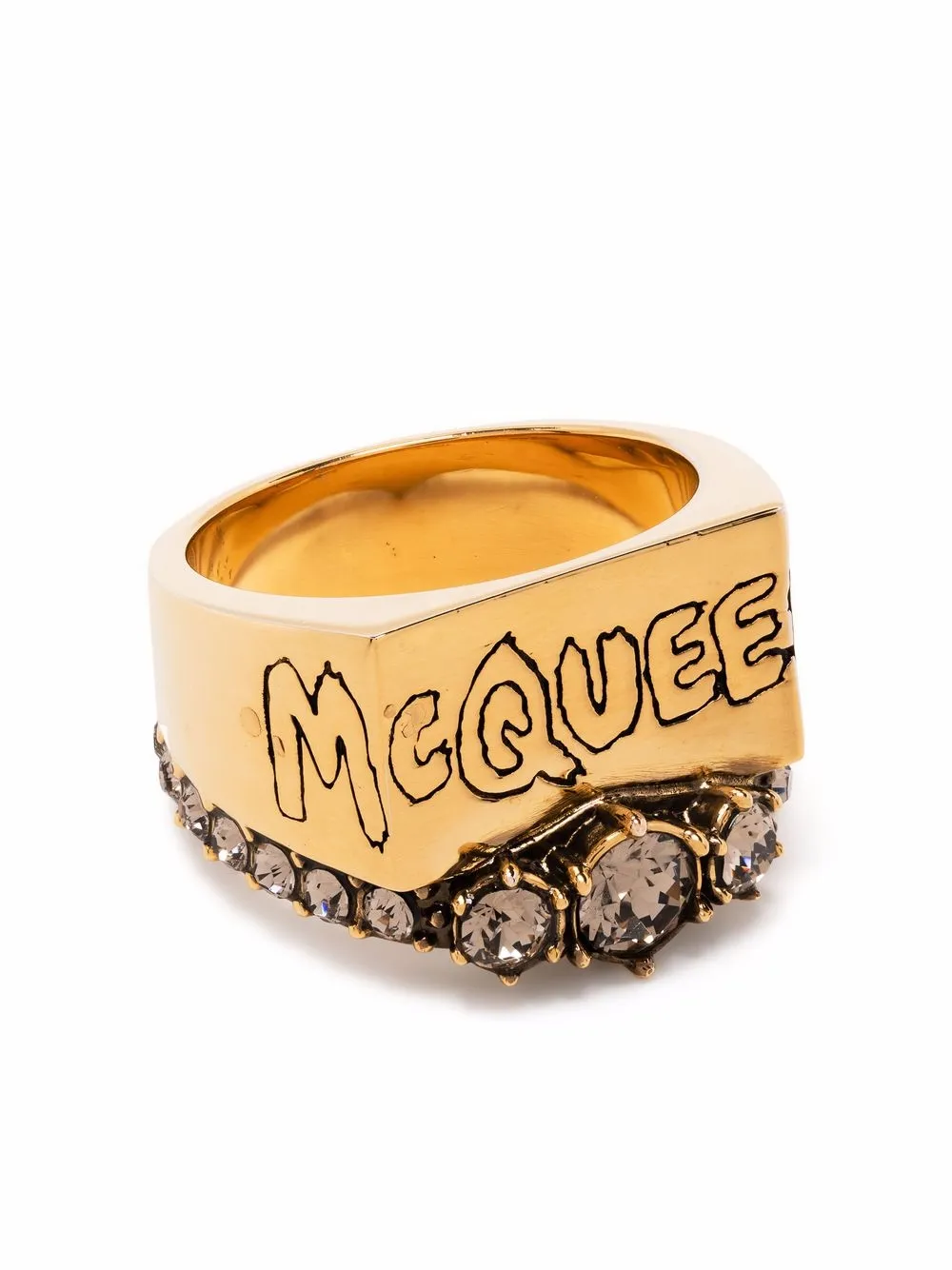 Eingraviertes Logo, Kristallverzierung, Siegelring.