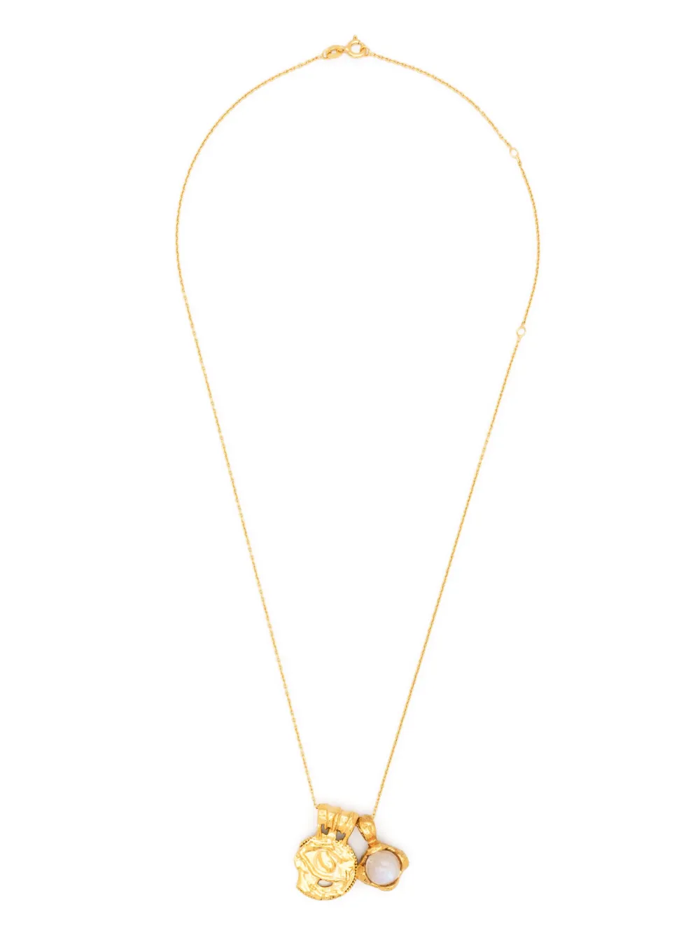 24kt vergoldet, filigrane Kette, Medaillon-Anhänger, Mondstein, Karabinerverschluss. Wir haben uns mit Good On You zusammengetan. Das von der unabhängigen Agentur entwickelte Rating-System bewertet Labels auf ihre Nachhaltigkeit für Umwelt, Menschen und Tiere. Die verschiedenen Kriterien werden vereinfacht auf einer Fünf-Punkte-Skala dargestellt. Um unser Conscious Label zu erhalten, müssen größere Brands mindestens vier von fünf Punkten erreichen („Gut“), während kleinere Brands mindestens drei von fünf Punkten („Ein guter Anfang“) erreichen müssen.