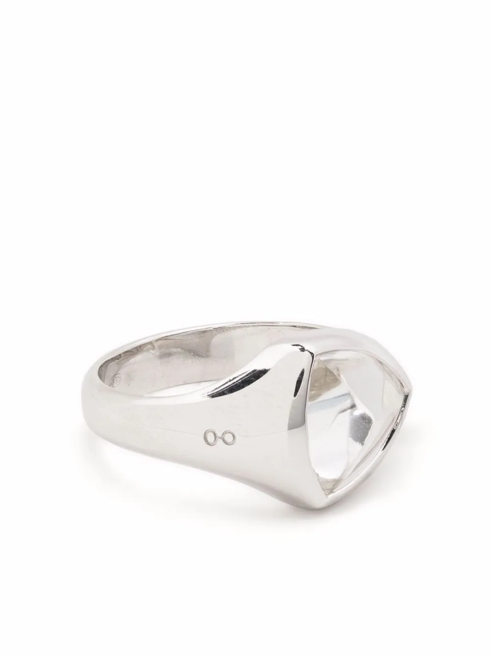 Kristall, dreieckig, eingraviertes Logo. Material: Sterlingsilber.