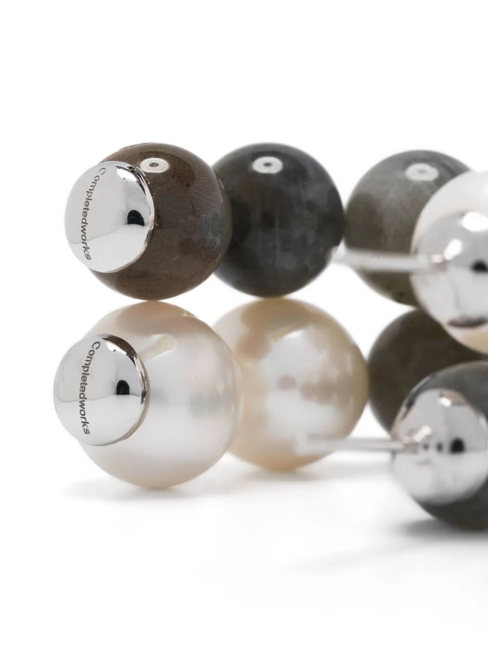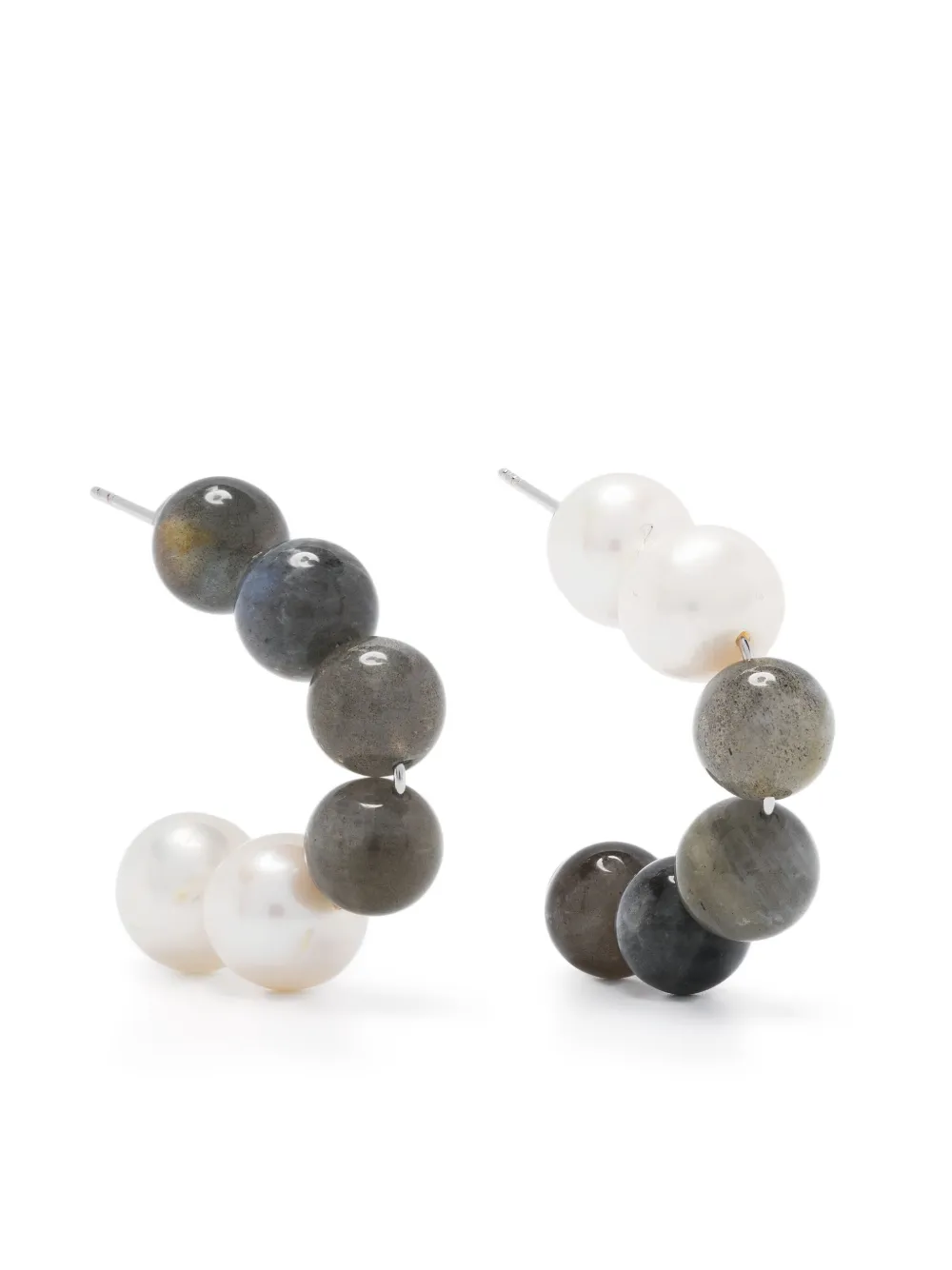 Silber, mit Kunstperlen besetzt, kontrastfarbiger Einsatz, mittelgroße Creolen , Schmetterlingsverschluss. Bitte beachten Sie, dass dieser Ohrschmuck als Paar geliefert wird.