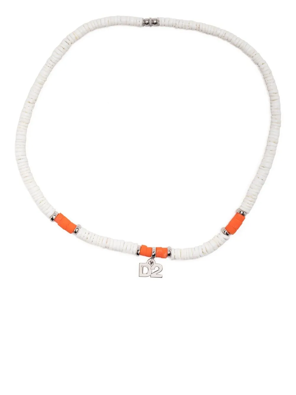 Weiß, Orange, Perlendetails, Logo-Anhänger, runder Karabinerverschluss.
