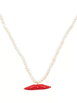 Rot, Anhänger, Lippenmotiv, Kunstperlen.