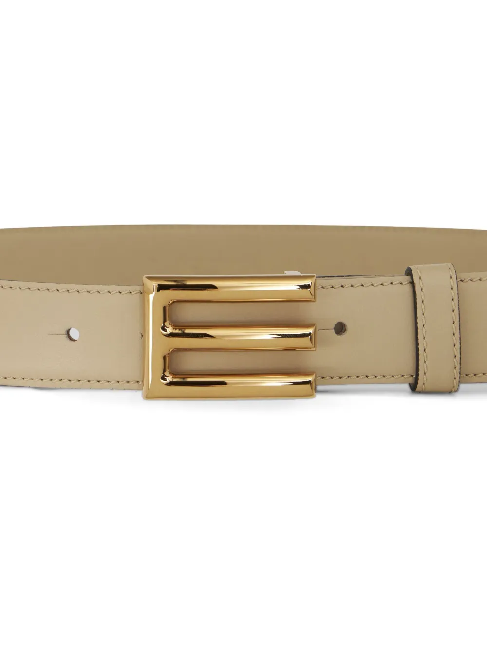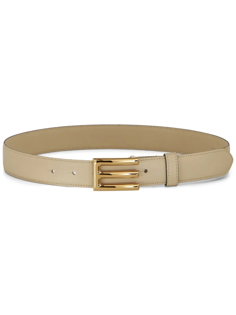 Hellbeige, Kalbsleder, goldfarbener Schnallenverschluss, Schnallenverschluss mit Logo, variable Passform.