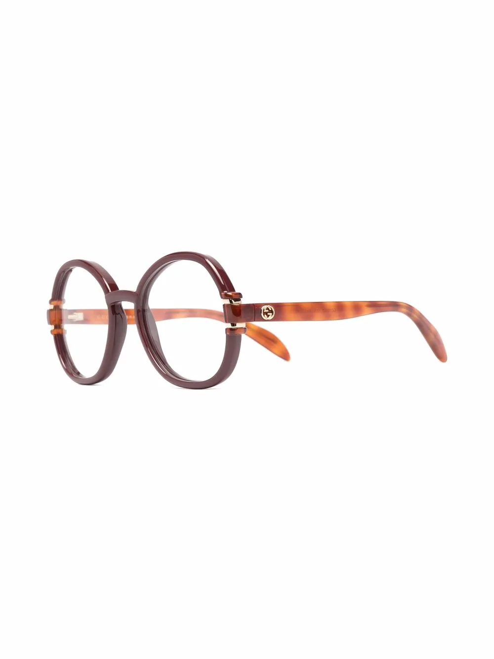 Rundes Gestell, klare Gläser, Schildpattoptik, goldfarbenes Logo-Schild, gerade Bügel, abgerundete Enden. Alle Brillen von FARFETCH werden als Brillengestelle ohne Sehstärke verkauft. Diese Brille wird mit einer Schutzhülle geliefert.