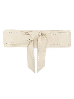 Beige, Kalbsleder, Kalbswildleder, silberfarbene Nieten, Schleifenverschluss vorne, variable Passform.