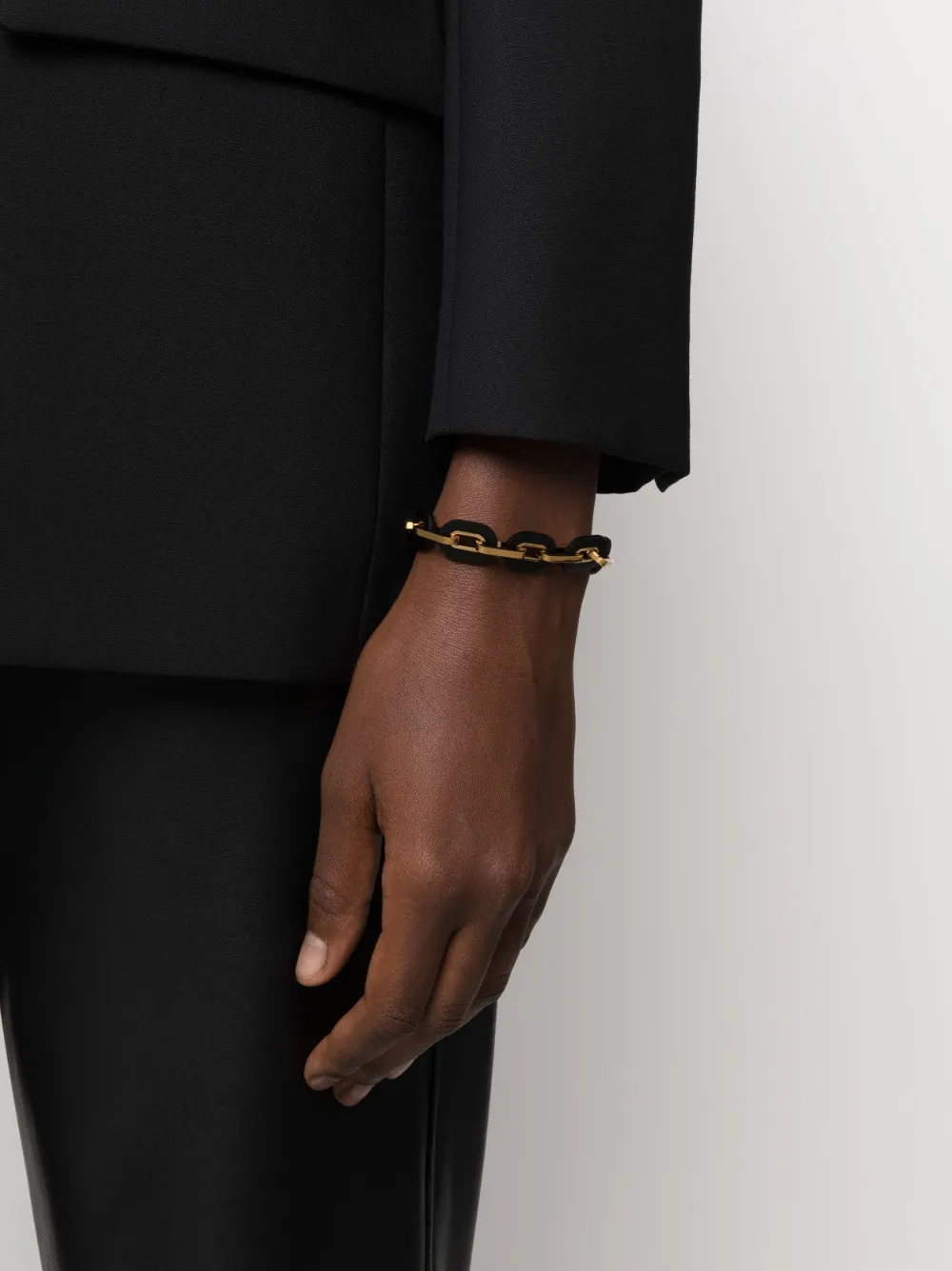 Schwarz, Goldfarben, Kalbsleder, Messing, poliertes Finish, Hakenverschluss. Dieses Pieces wird mit einem Staubschutzbeutel geliefert.