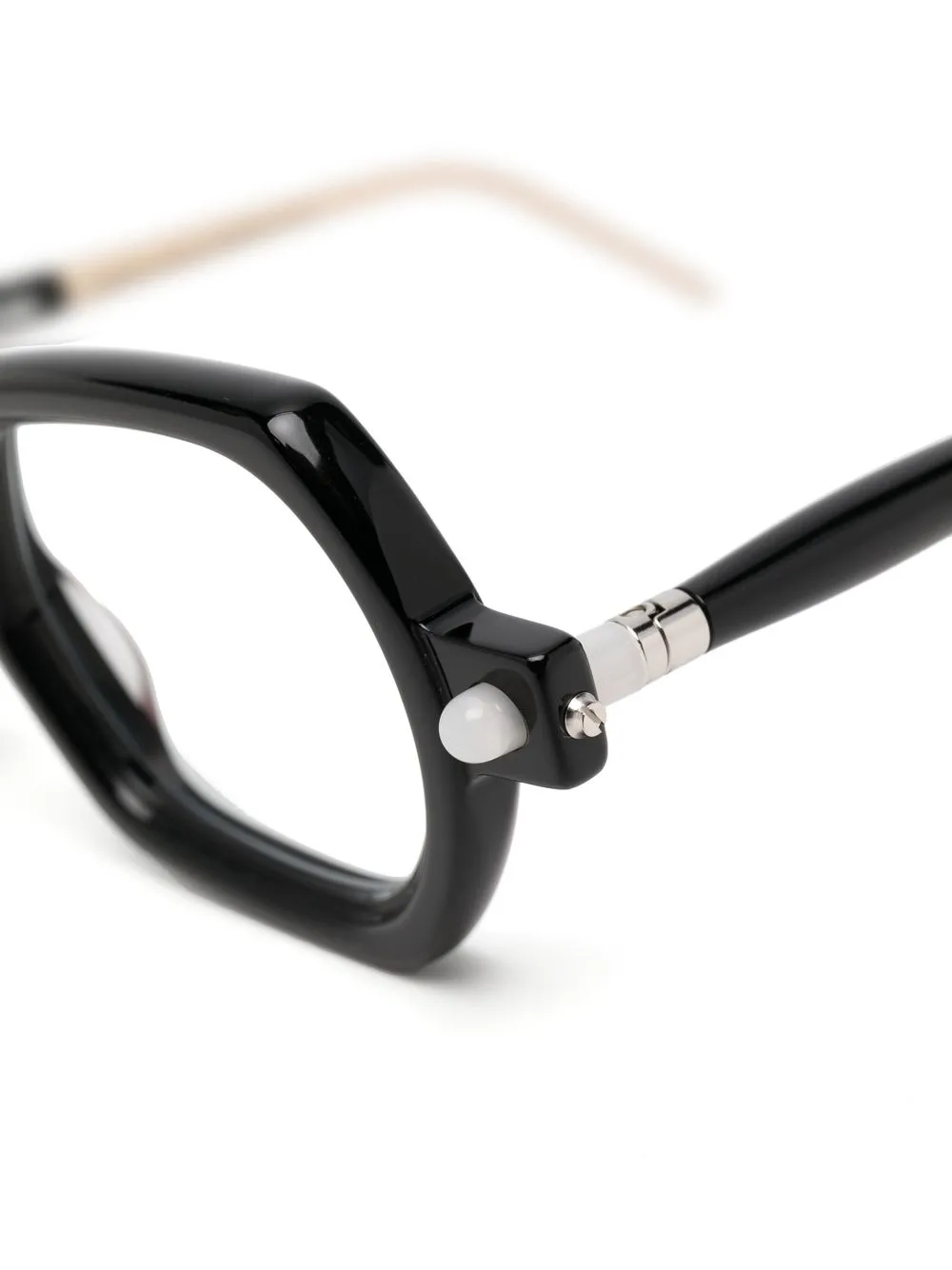 Schwarz, Elfenbeinfarben, Azetat, zweifarbig, geometrisches Design, silberfarbene Beschläge, Design-Bügel. Diese Brille wird mit einer Schutzhülle geliefert. Alle Brillen von FARFETCH werden als Brillengestelle ohne Sehstärke verkauft.