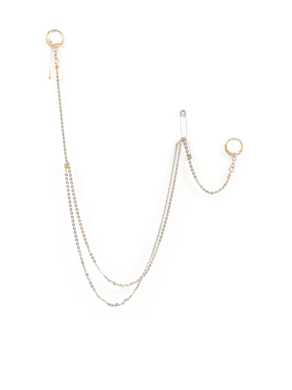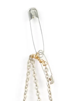 Silberfarben, Goldfarben, Messing, Kettendetails, mittelgroße Creolen , Sicherheitsnadel-Detail, Steckverschluss.