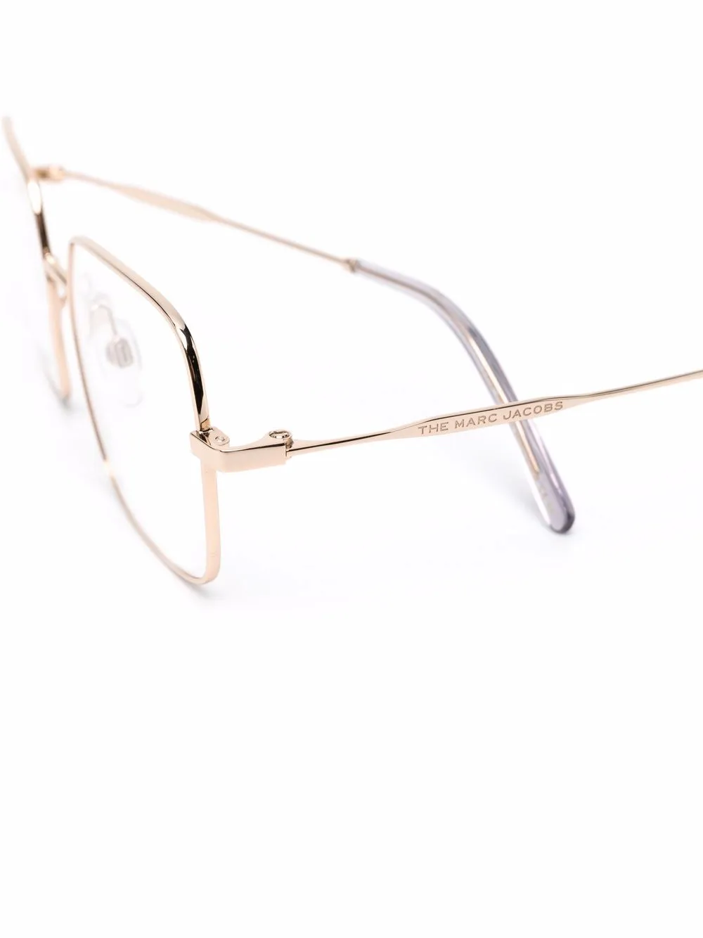Goldfarbene Beschläge, eckiges Gestell, gerade Bügel, abgerundete Enden. Material: Metall. Diese Brille wird mit einer Schutzhülle geliefert.