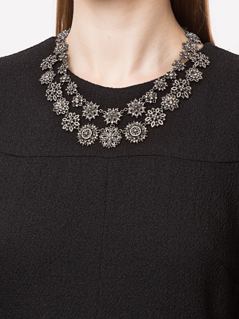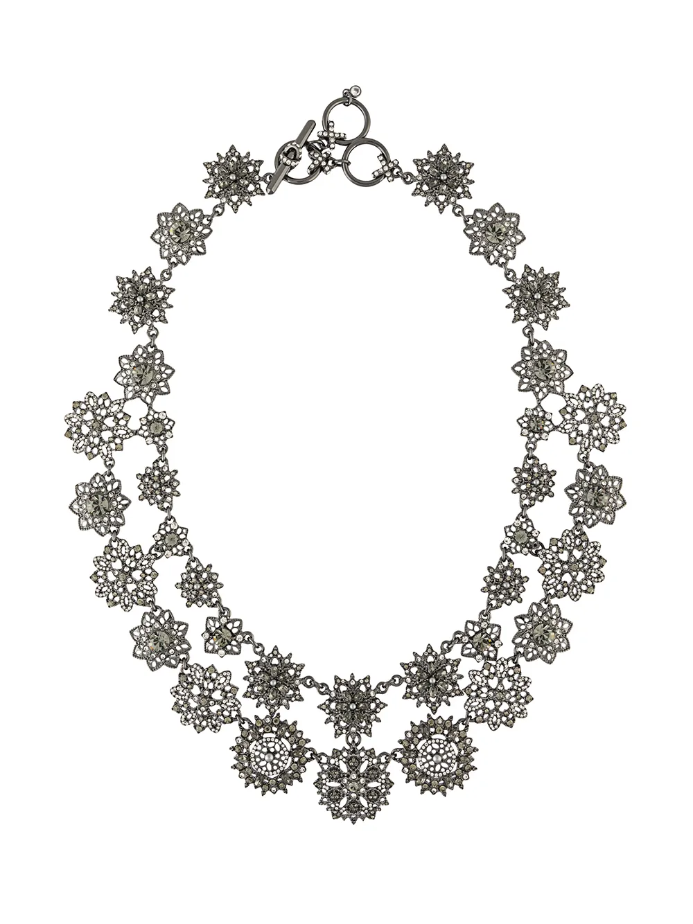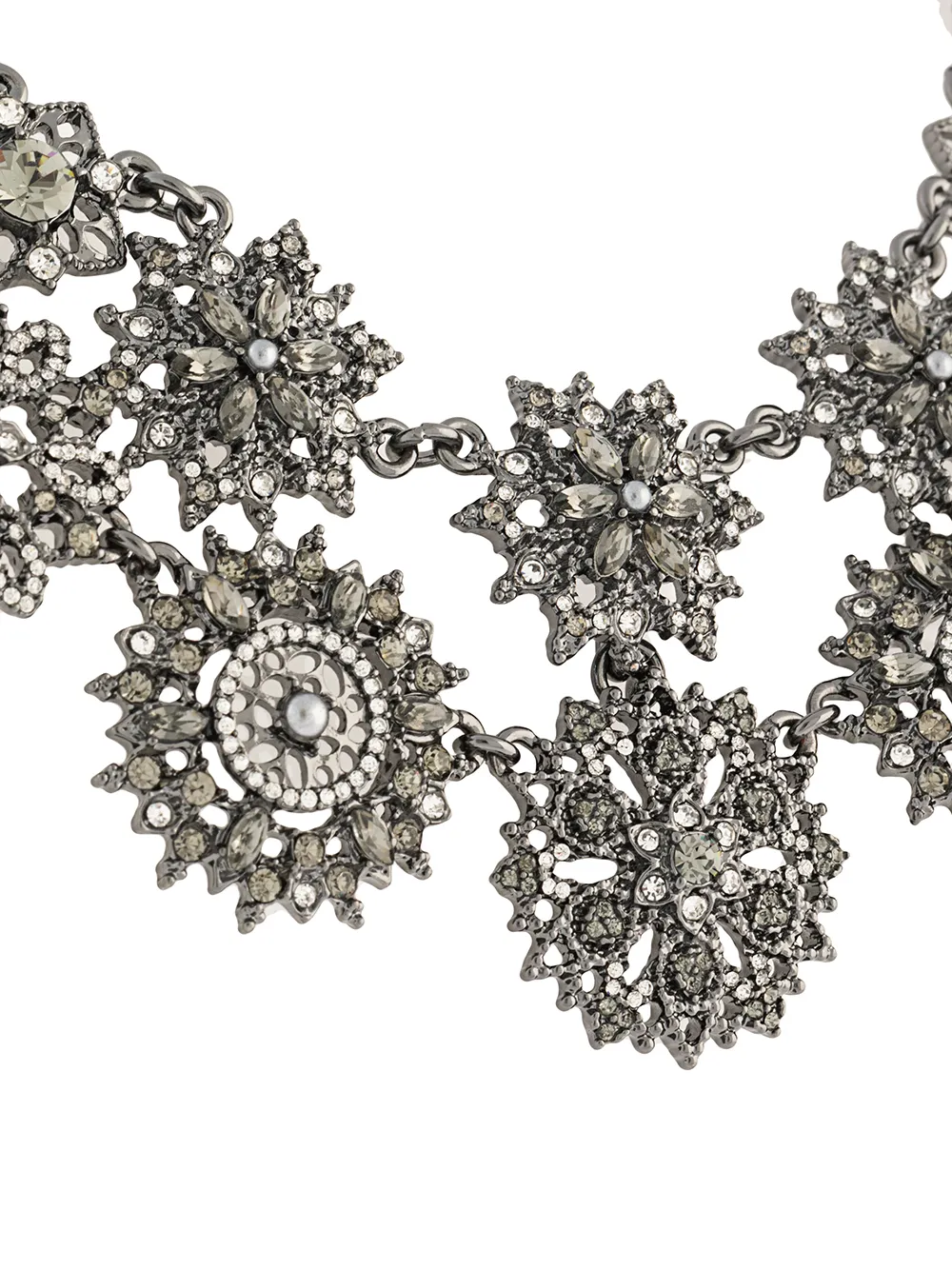Blumendetail, Kristallverzierung, Knebelverschluss. Farbe: Silber.