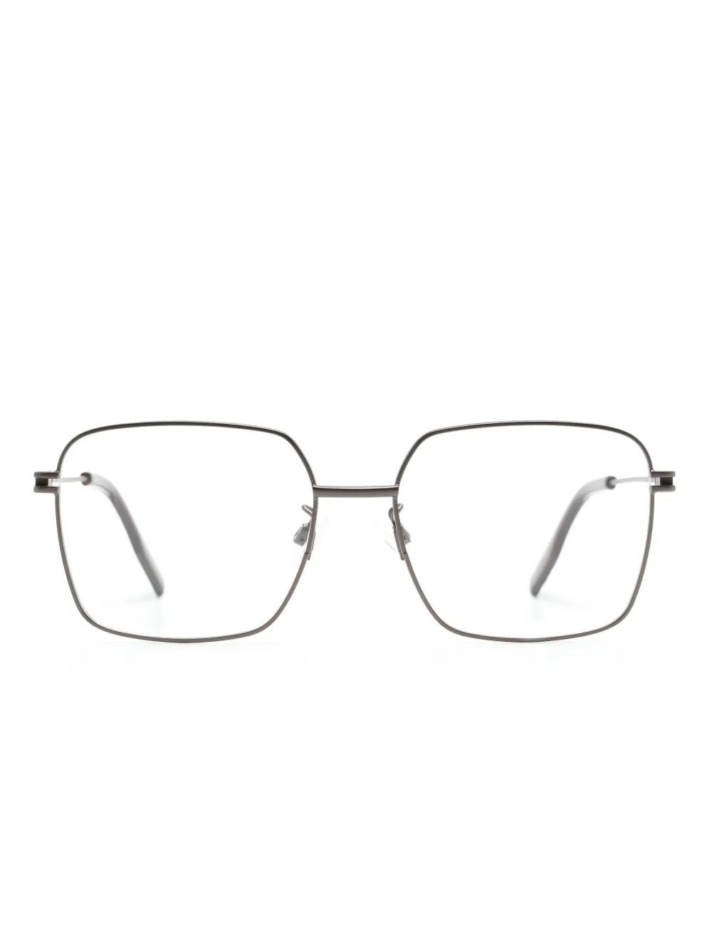 Dunkelgrau, klare Gläser, eckiges Gestell, eingraviertes Logo, Nasenpads, gerade Bügel, abgerundete Enden. Alle Brillen von FARFETCH werden als Brillengestelle ohne Sehstärke verkauft. Diese Brille wird mit einer Schutzhülle geliefert.