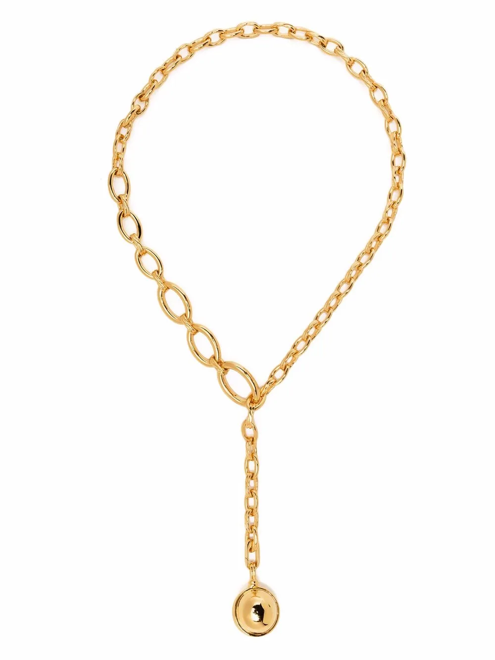 Vergoldete Beschläge, ikonischer Orb, Lariatkette.