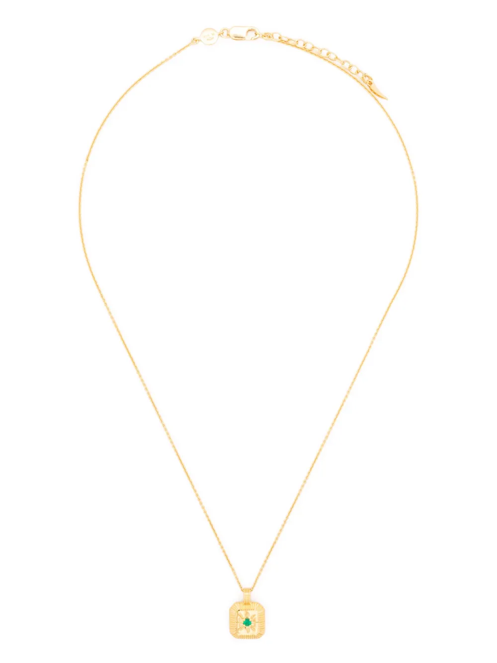 Goldfarben, Smaragdgrün, 18kt vergoldet, Chalzedon, Panzerkette, Sternanhänger, Karabinerverschluss.