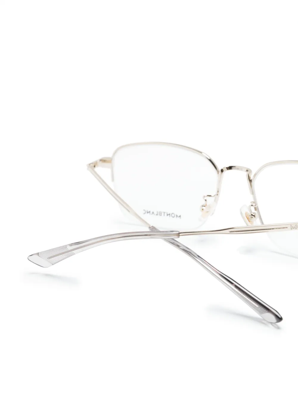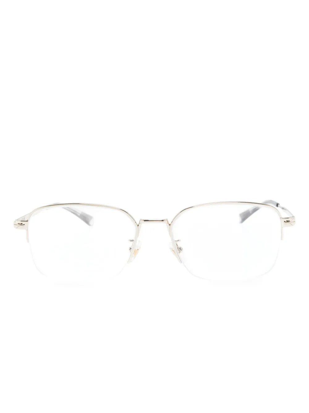 Silberfarben, eckiges Gestell, klare Gläser, Nasenpads, gerade Bügel, abgerundete Enden. Diese Brille wird mit einer Schutzhülle geliefert. Alle Brillen von FARFETCH werden als Brillengestelle ohne Sehstärke verkauft.