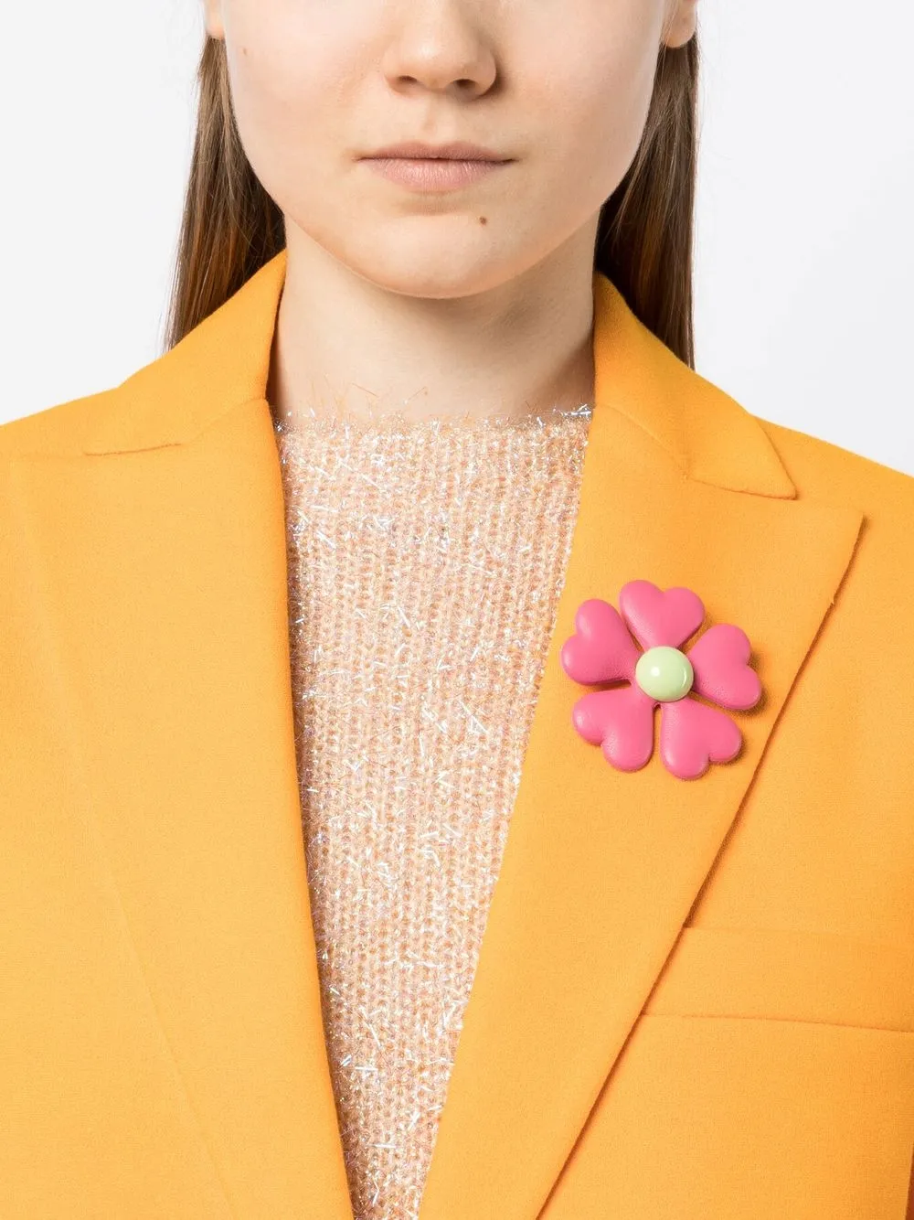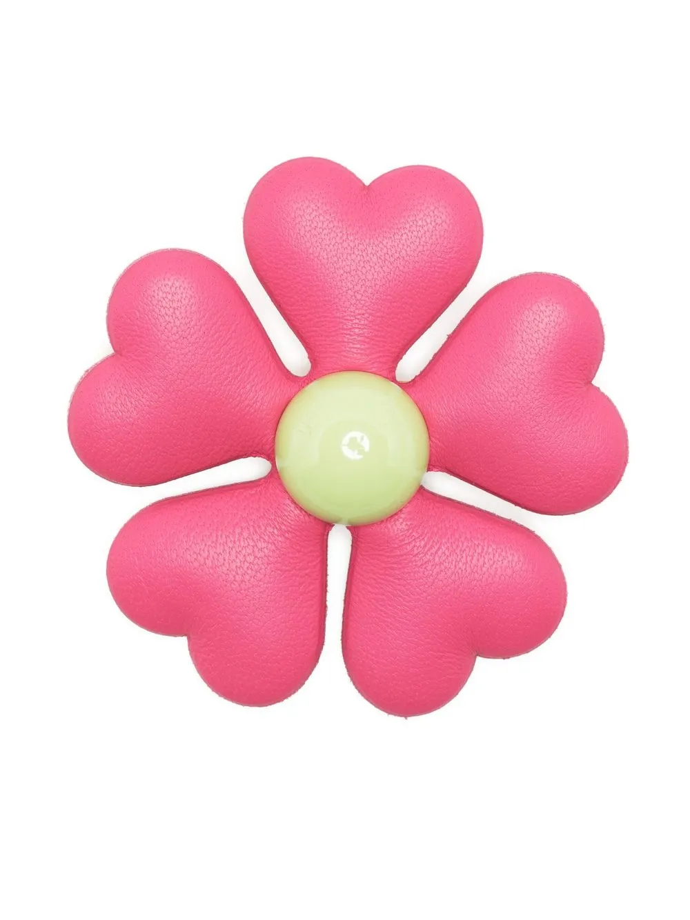 Deep Pink, Hellgelb, Kalbsleder, zweifarbig, Anhänger im Blumen-Design.