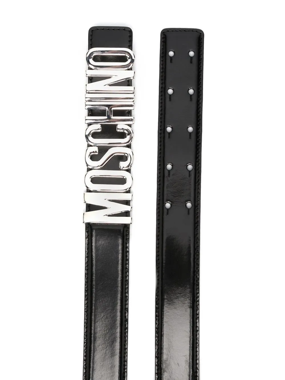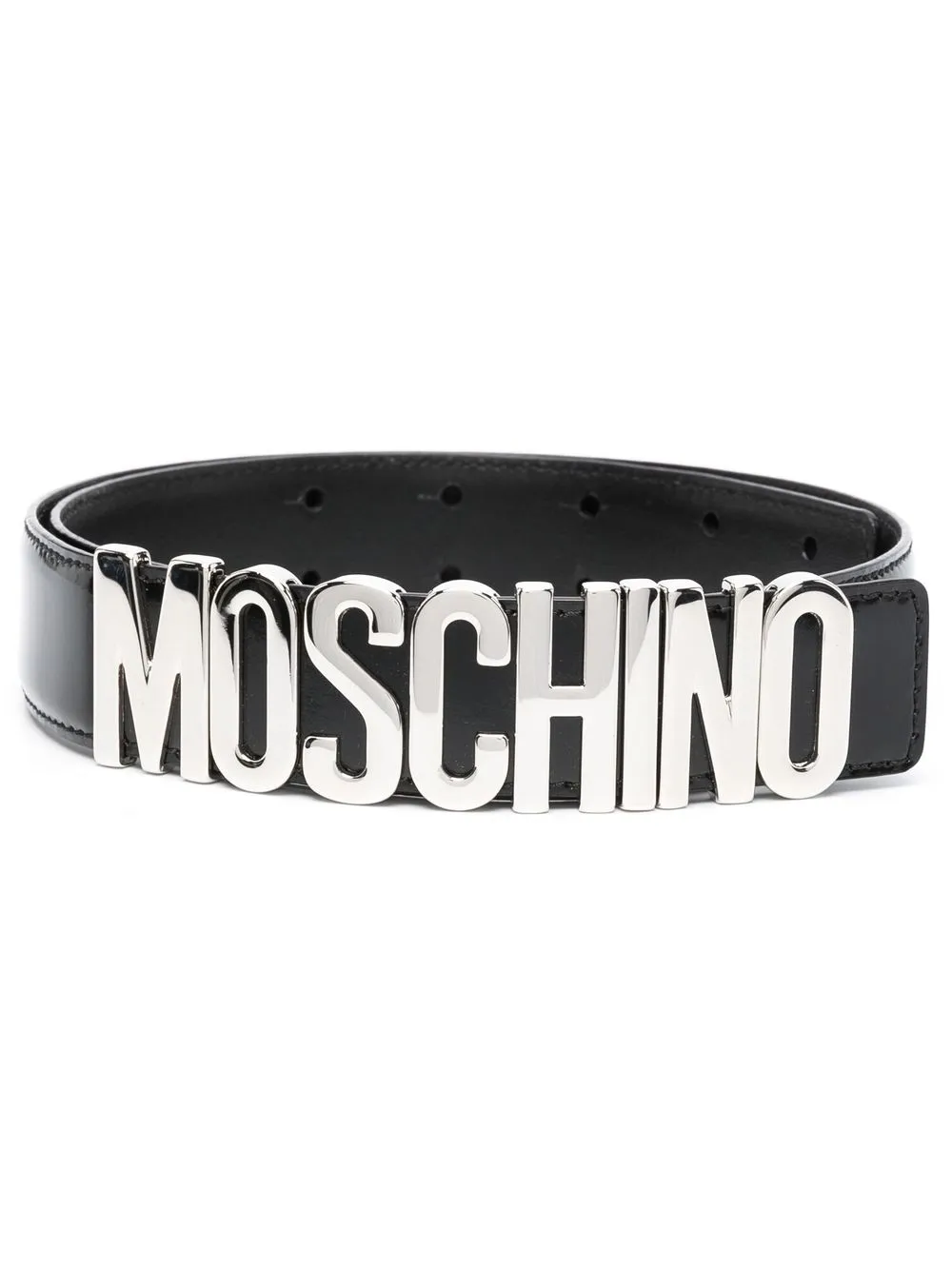 Schwarz, Kalbsleder, Glattleder, vorgestanzte Löcher, silberfarbenes Logo-Schild, variable Passform.
