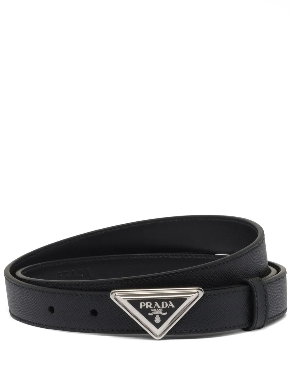 Schwarz, Saffiano-Leder , silberfarbene Beschläge, variable Passform.