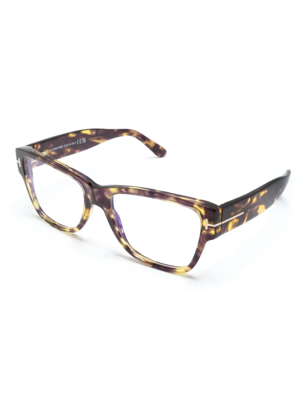 Grape Purple, Hellgelb, Azetat, Schildpattoptik, eckiges Gestell, klare Gläser. Alle Brillen von FARFETCH werden als Brillengestelle ohne Sehstärke verkauft.