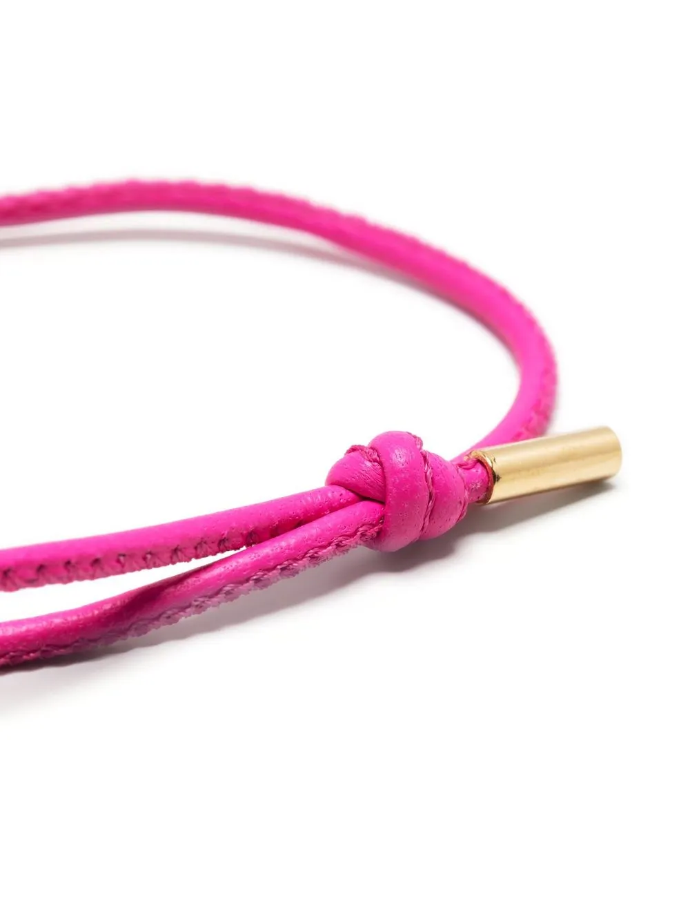 Pink, Kalbsleder, goldfarbenes Logo-Schild.