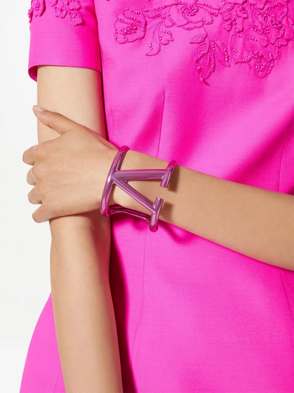 Vlogo Armspange im Metallic-Look von Valentino Garavani US. Merkmale: Pink, Messing, ikonisches V-Logo und offene Front.