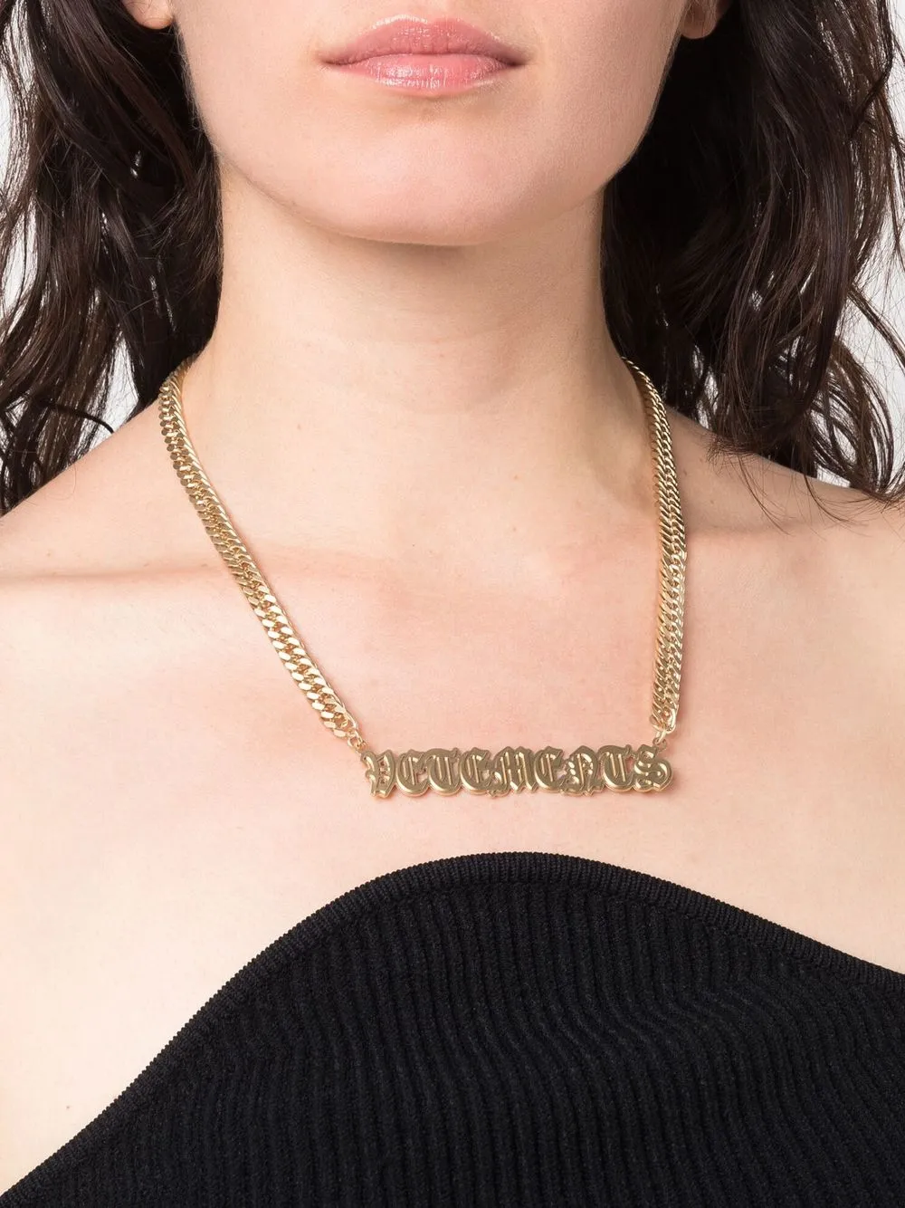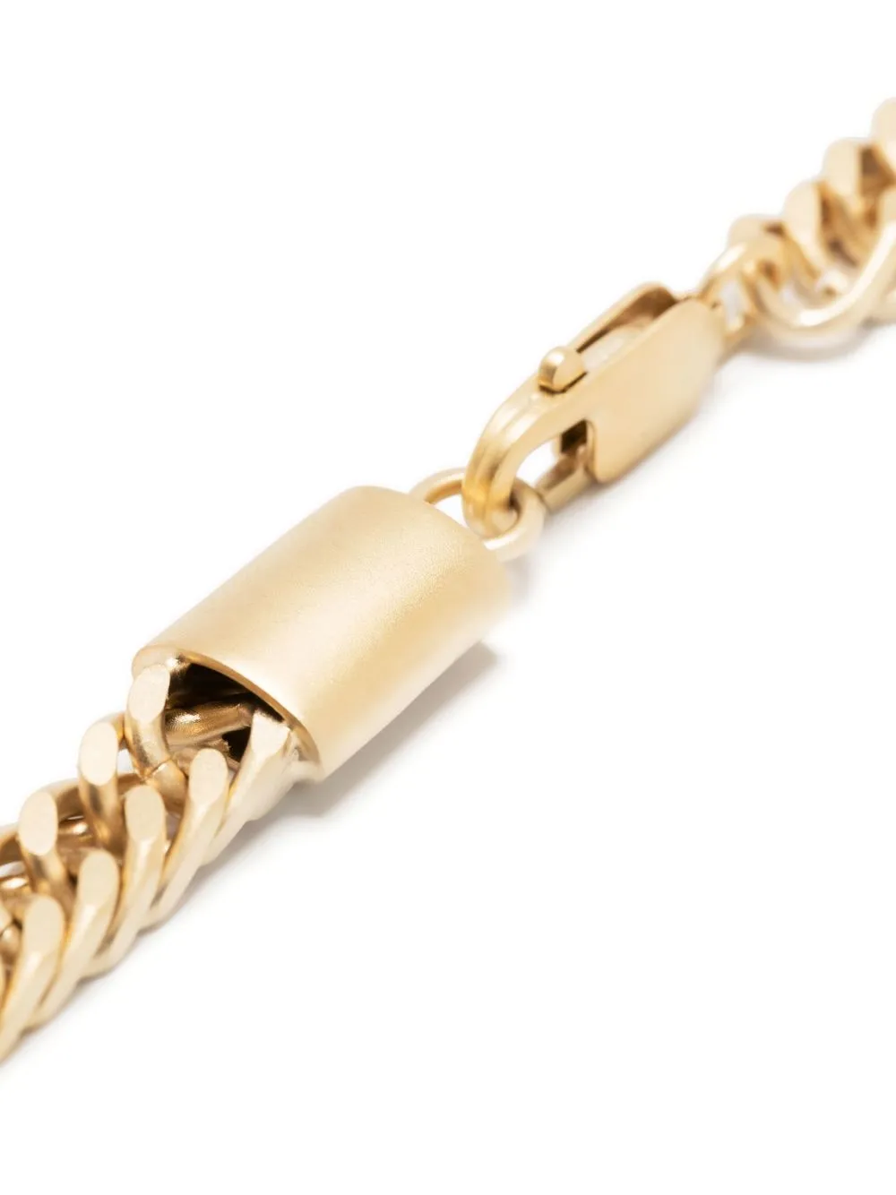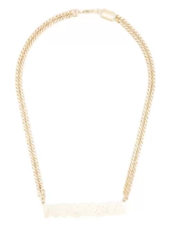 Gold, Karabinerverschluss, Panzerkette, Logo-Schild, poliertes Finish.