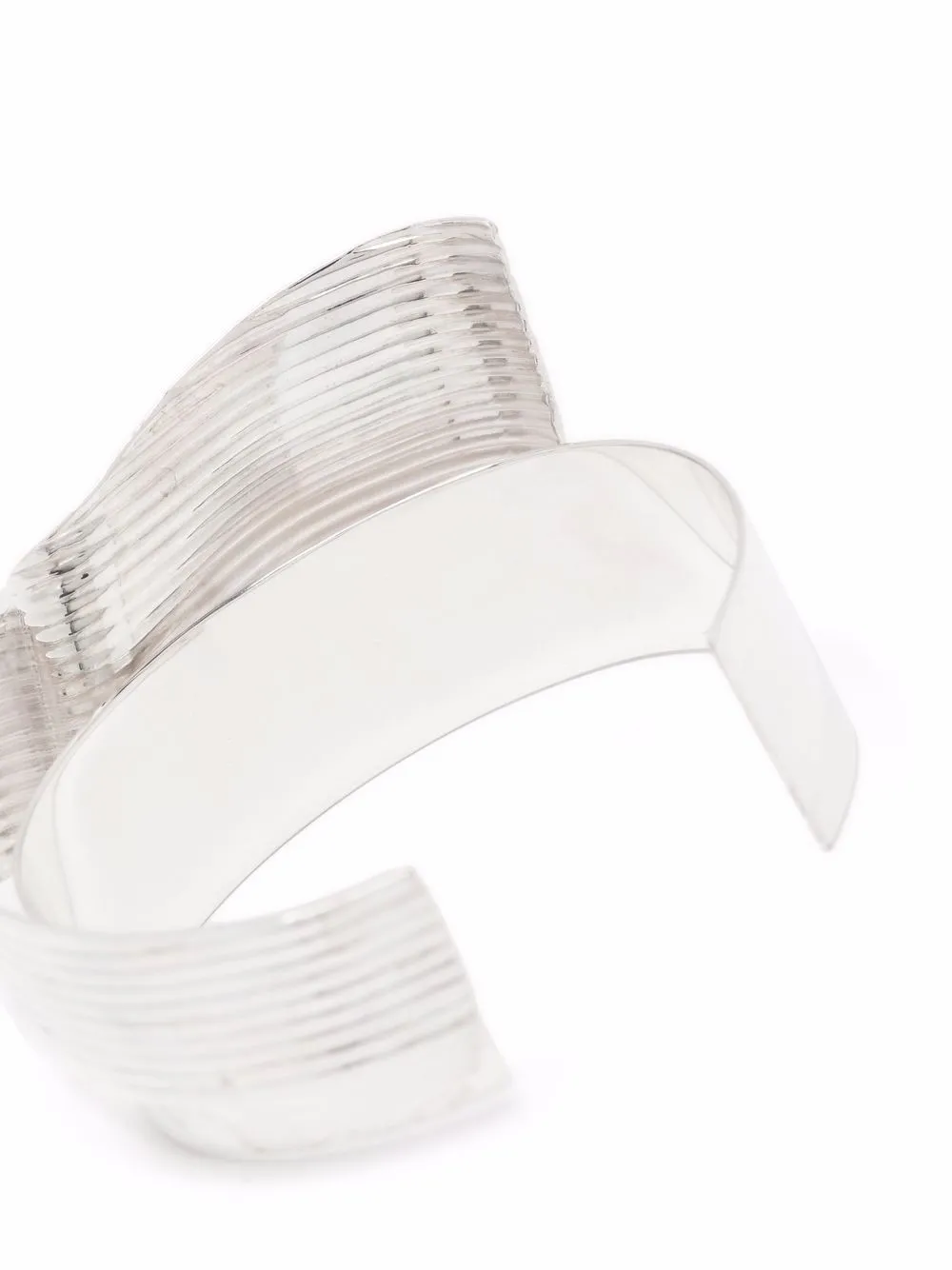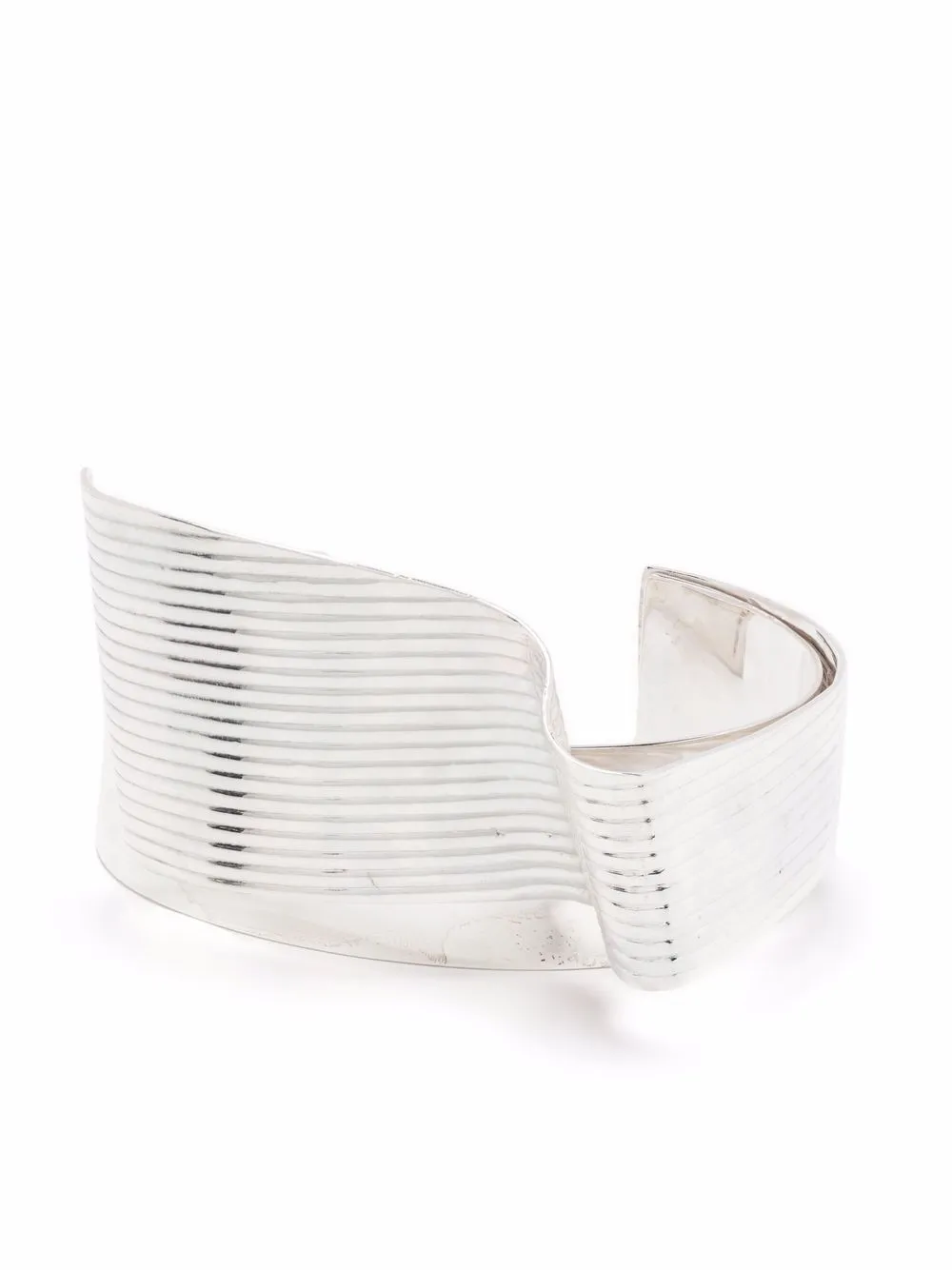 Gerippte Akzente, runde Form, silberfarbene Beschläge. Material: Sterlingsilber.