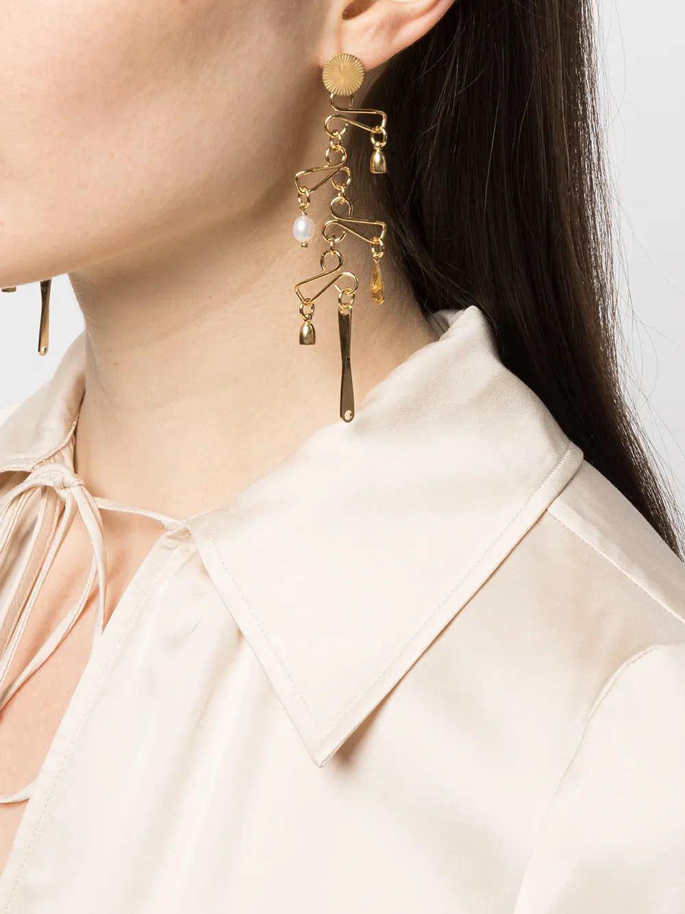 Poliertes Finish, Tropfendesign, Perlendetail, asymmetrischer Schnitt, Schmetterlingsverschluss. Doppelt Fun – diese Ohrringe werden als Paar geliefert.