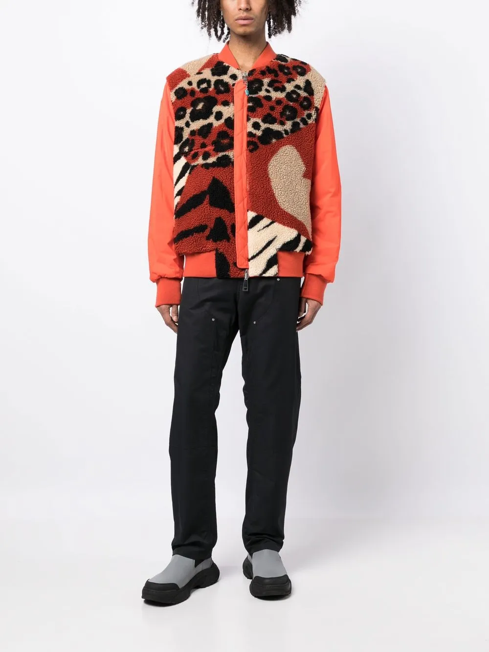 Korallenrosa, wendbares Design, strukturiert, Animal-Print, Stehkragen, Reißverschluss vorne, lange Ärmel, Pattentasche an der Brust, Brusttasche, zwei Pattentaschen vorne, gerader Saum.