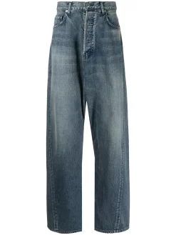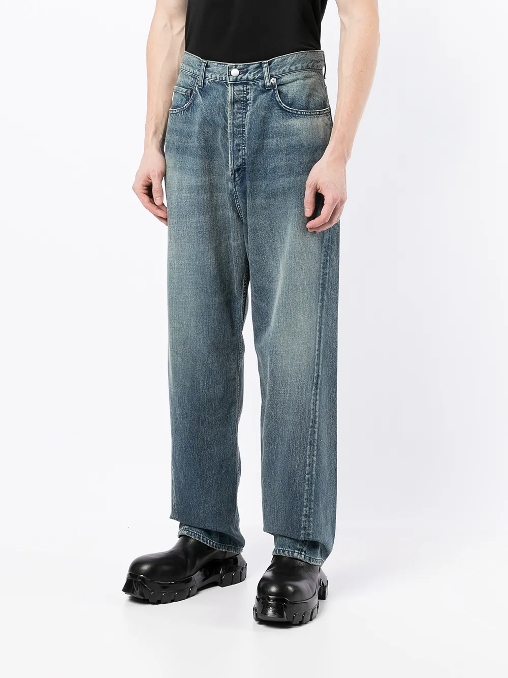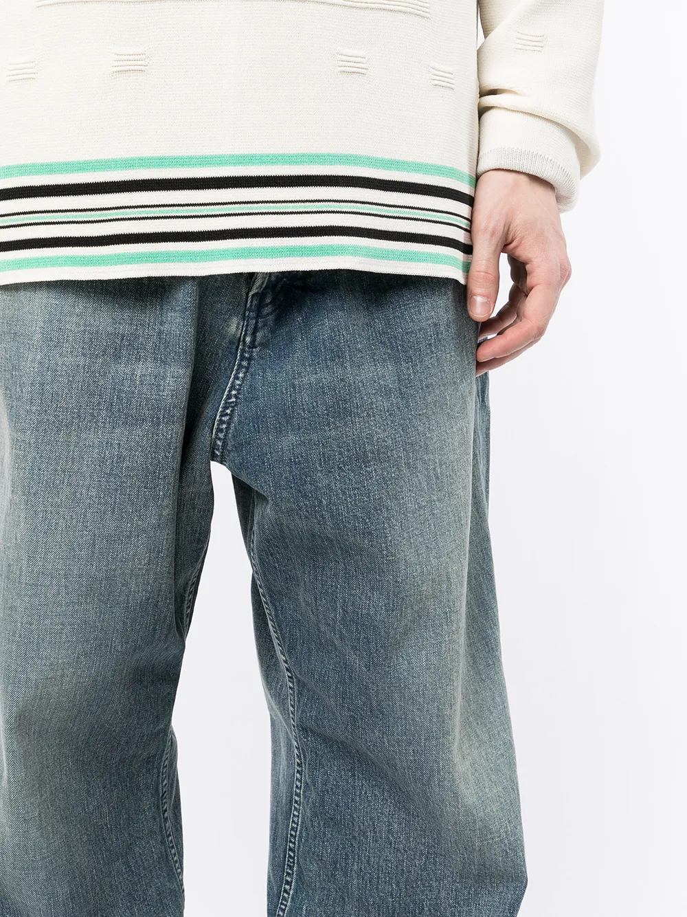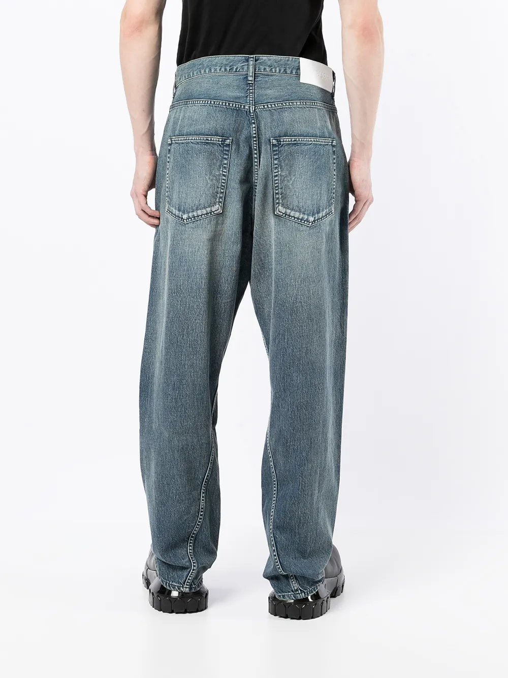 Logo-Patch hinten, Gürtelschlaufen, Knopfverschluss vorne, Five-Pocket-Design, gerades Bein. Farbe: Blau. Material: Baumwolle.