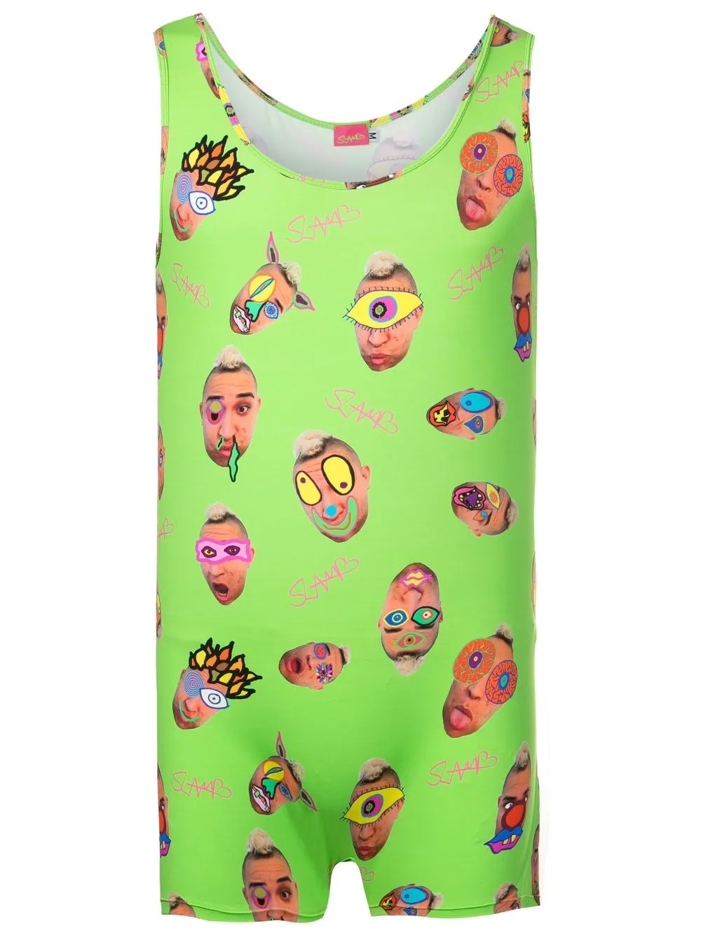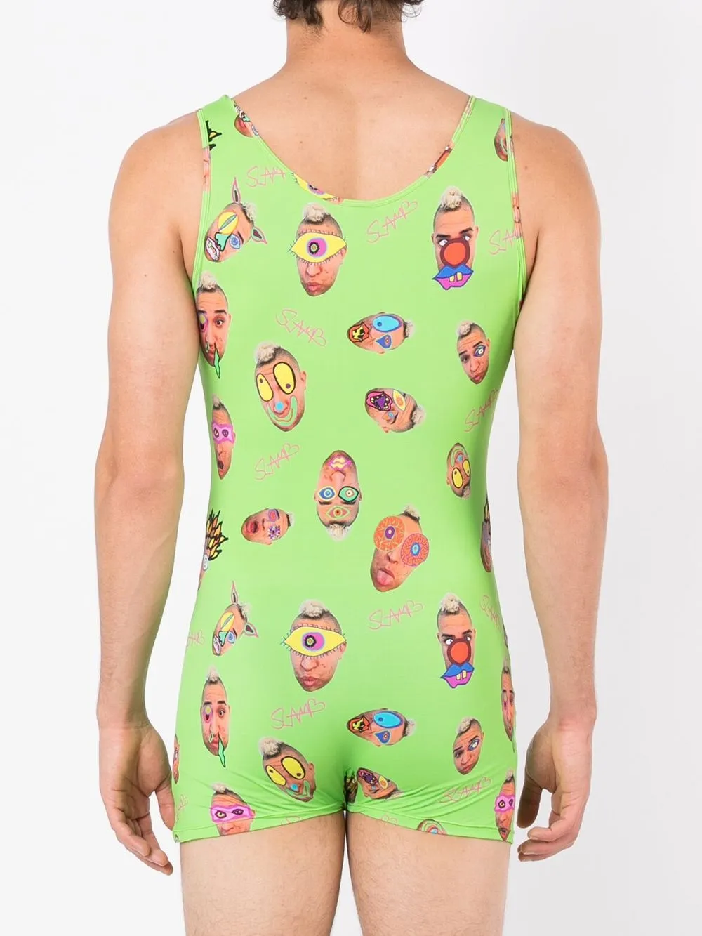 Hellgrün, Stretch-Design, abstrakter Print, durchgehender Logo-Print, U-Ausschnitt, ärmellos, schmaler Schnitt, oberschenkellang, zum Hineinschlüpfen.