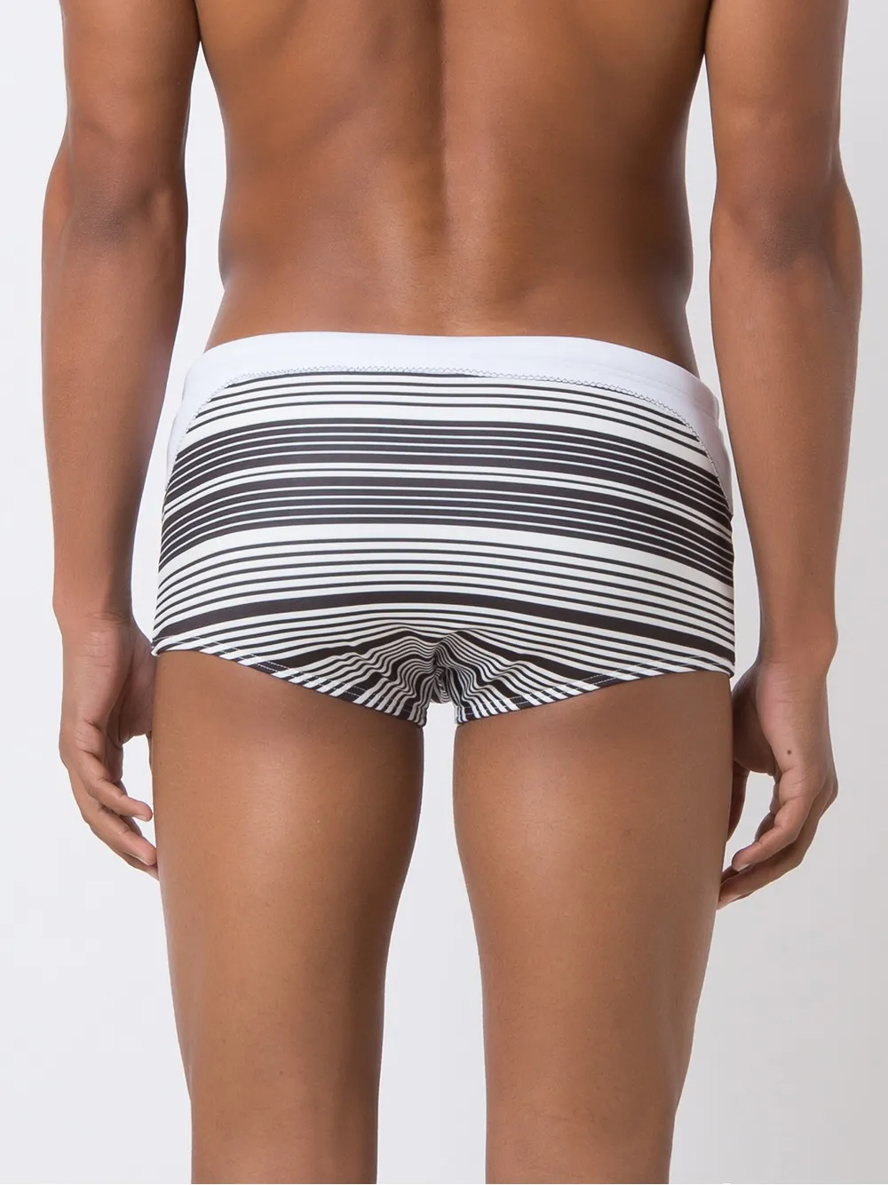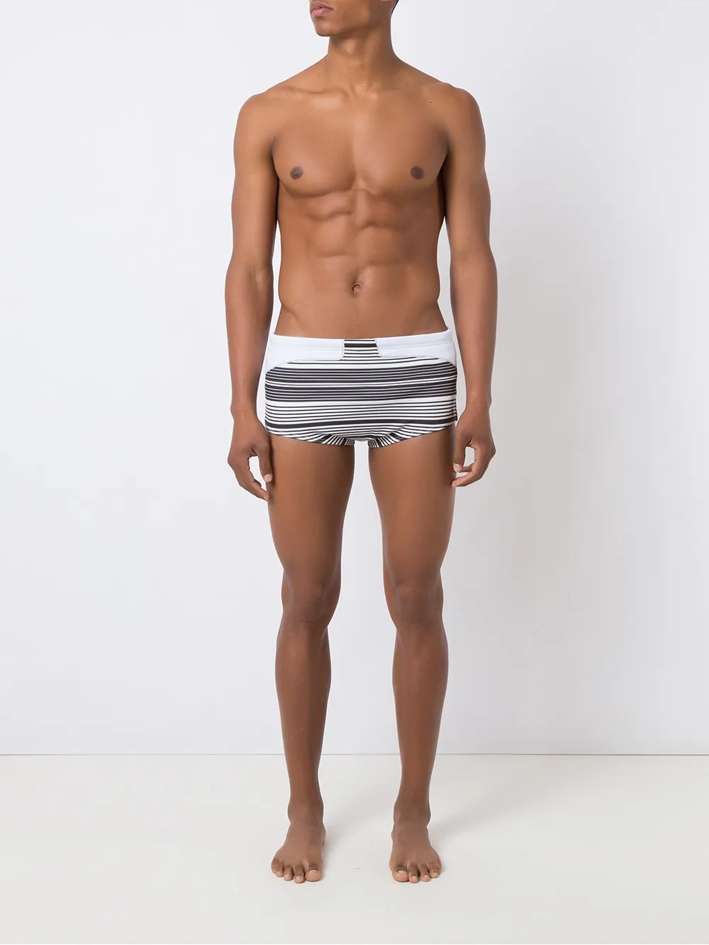 Gestreifte Badehose von Amir Slama mit folgenden Eigenschaften: elastischer Bund mit Kordelzug, Futter und kontrastierende Einsätze.