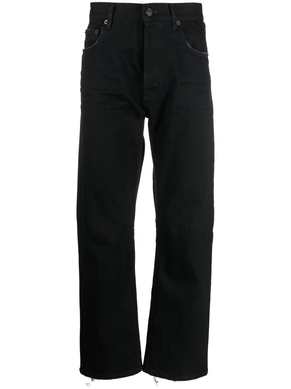 Schwarz, Baumwolle, mittlere Taille, Gürtelschlaufen, Knopf- und Reißverschluss vorne, Five-Pocket-Design, schmaler Schnitt, offener Saum. BEWUSSTER SHOPPEN: Wir haben uns mit Good On You zusammengetan. Die unabhängige Agentur hat ein Rating-System entwickelt, das Labels auf ihre Nachhaltigkeit in den Bereichen Menschen, Umwelt und Tierschutz bewertet. Dieser Artikel stammt von einer Brand, die im Bezug auf Umweltauswirkungen gut abschneidet. Bei der Herstellung wurden Materialien verwendet, die schädliche Chemikalien sowie Abwasser reduzieren und weniger Wasser beim Produktionsprozess benötigen.