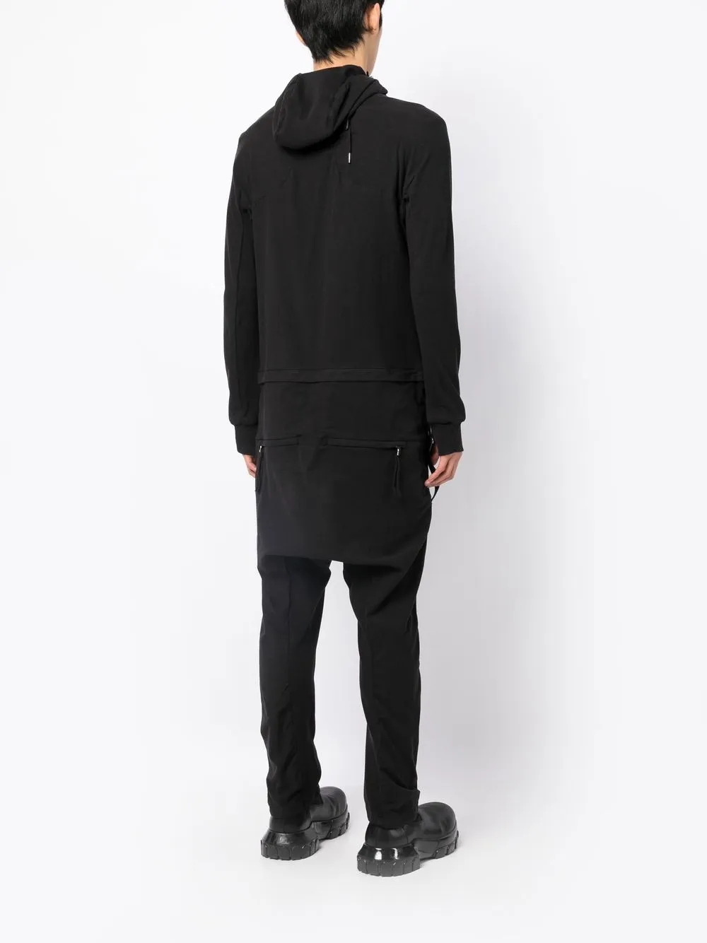 Schwarz, Stretch-Design, lockere Kapuze, lässige Form, asymmetrischer Reißverschluss vorne, lange Ärmel. Conscious: Besteht zu mindestens 50% aus Bio-Materialien.
