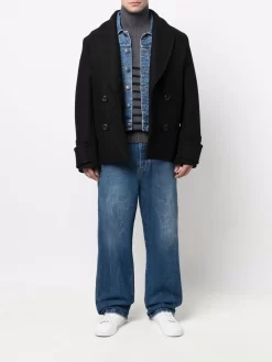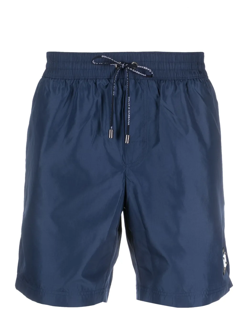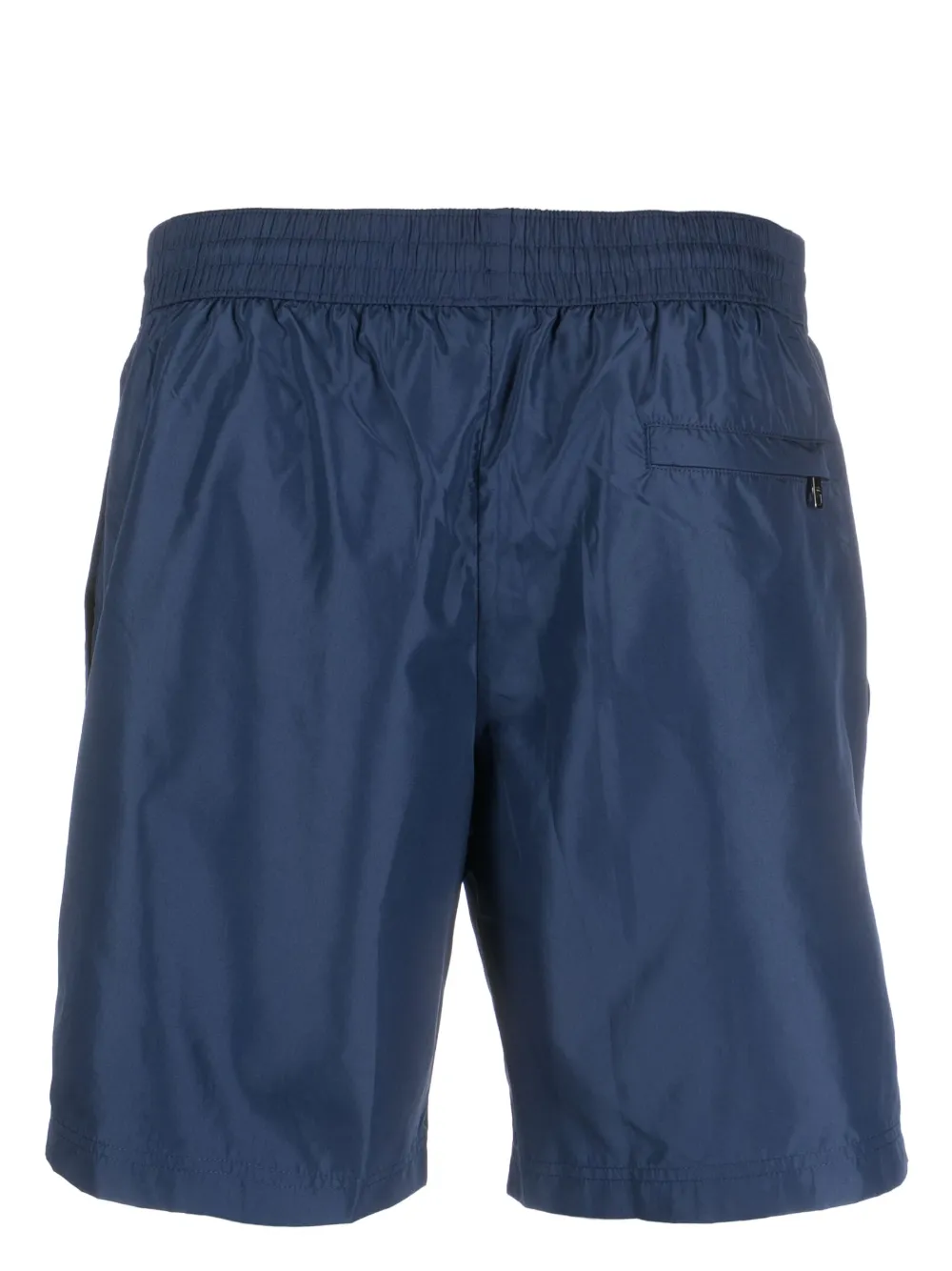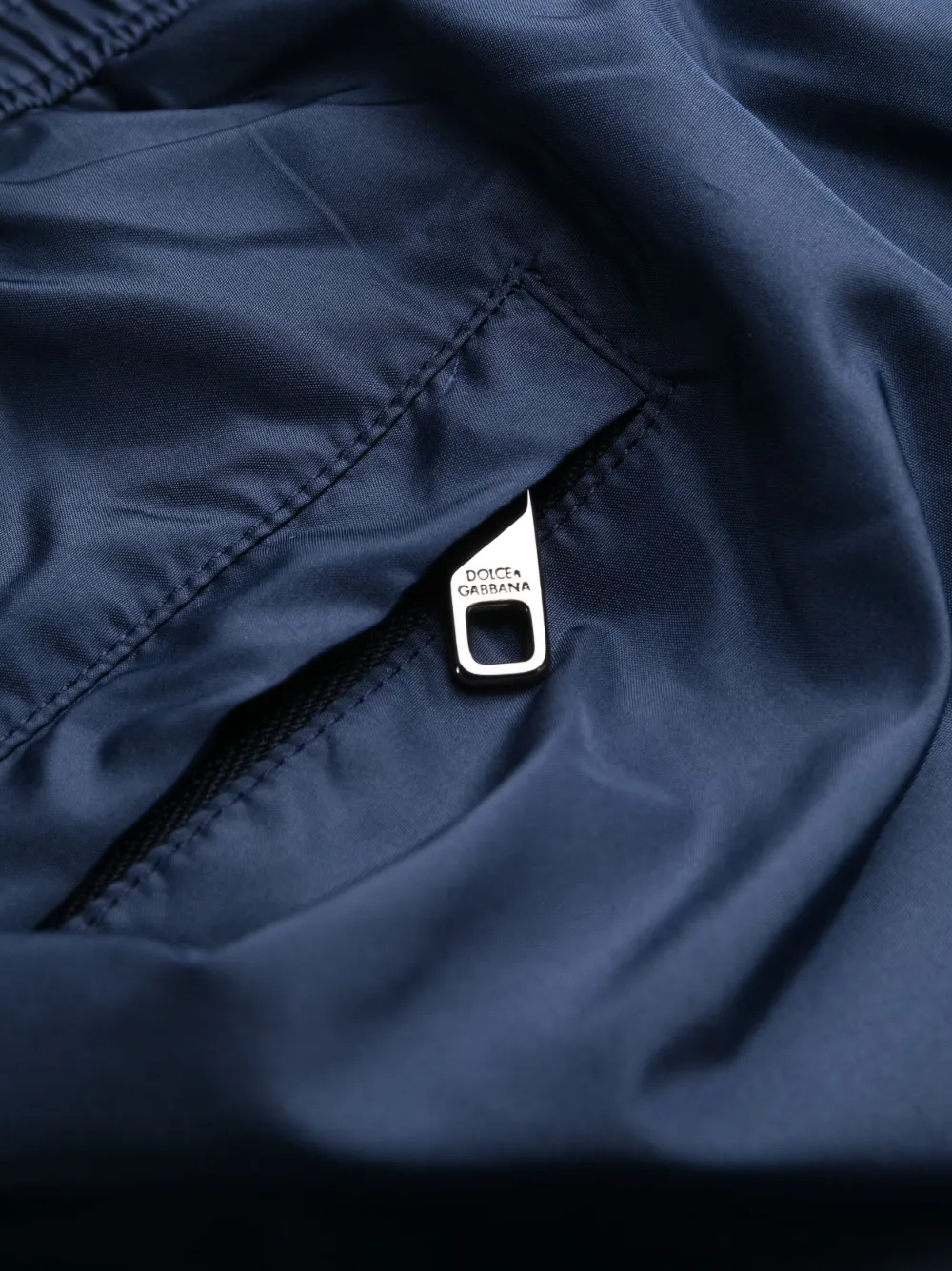 Marineblau, silberfarbenes Logo-Schild, zwei Eingrifftaschen an der Seite, Gesäßtasche mit Reißverschluss