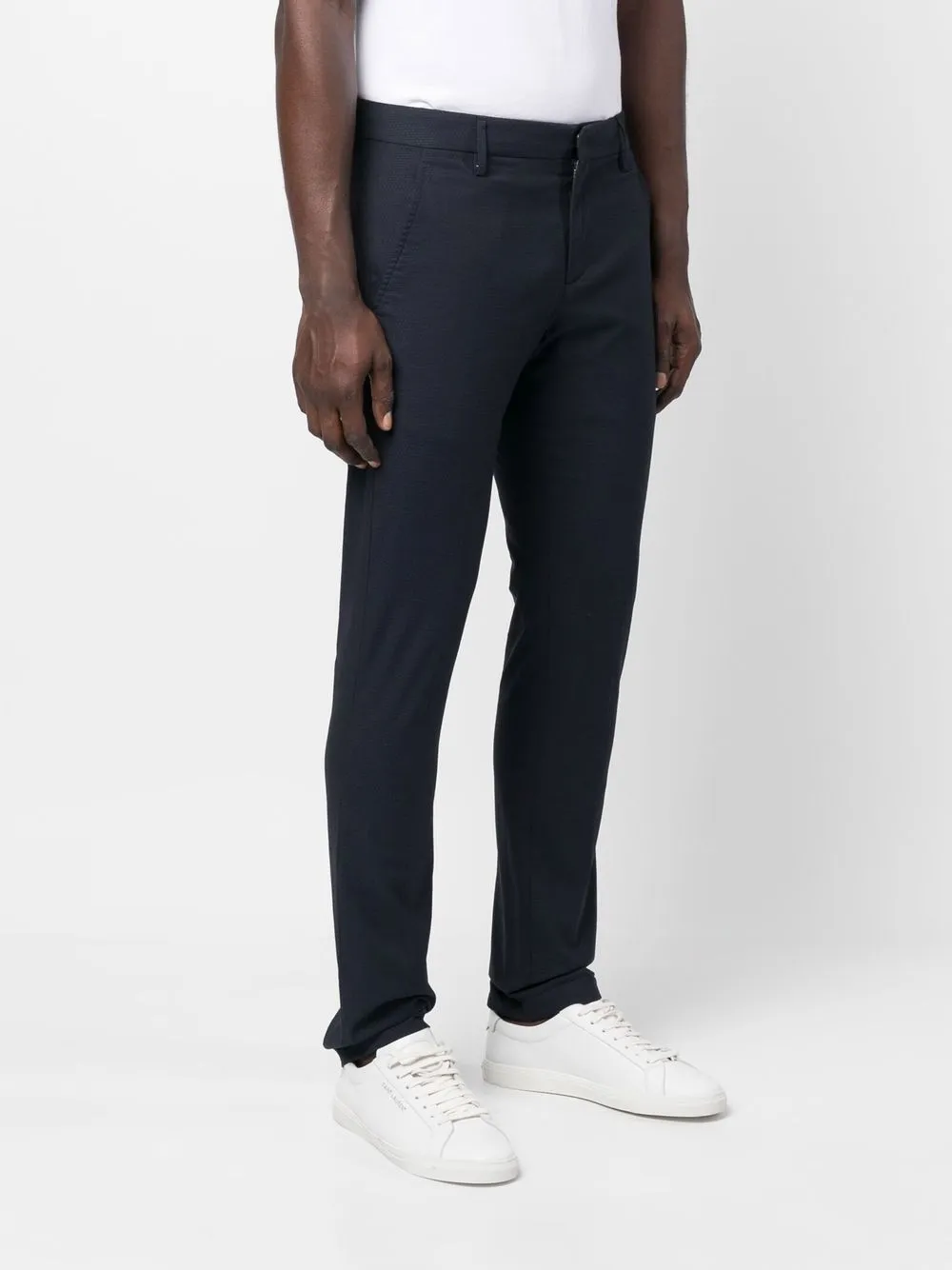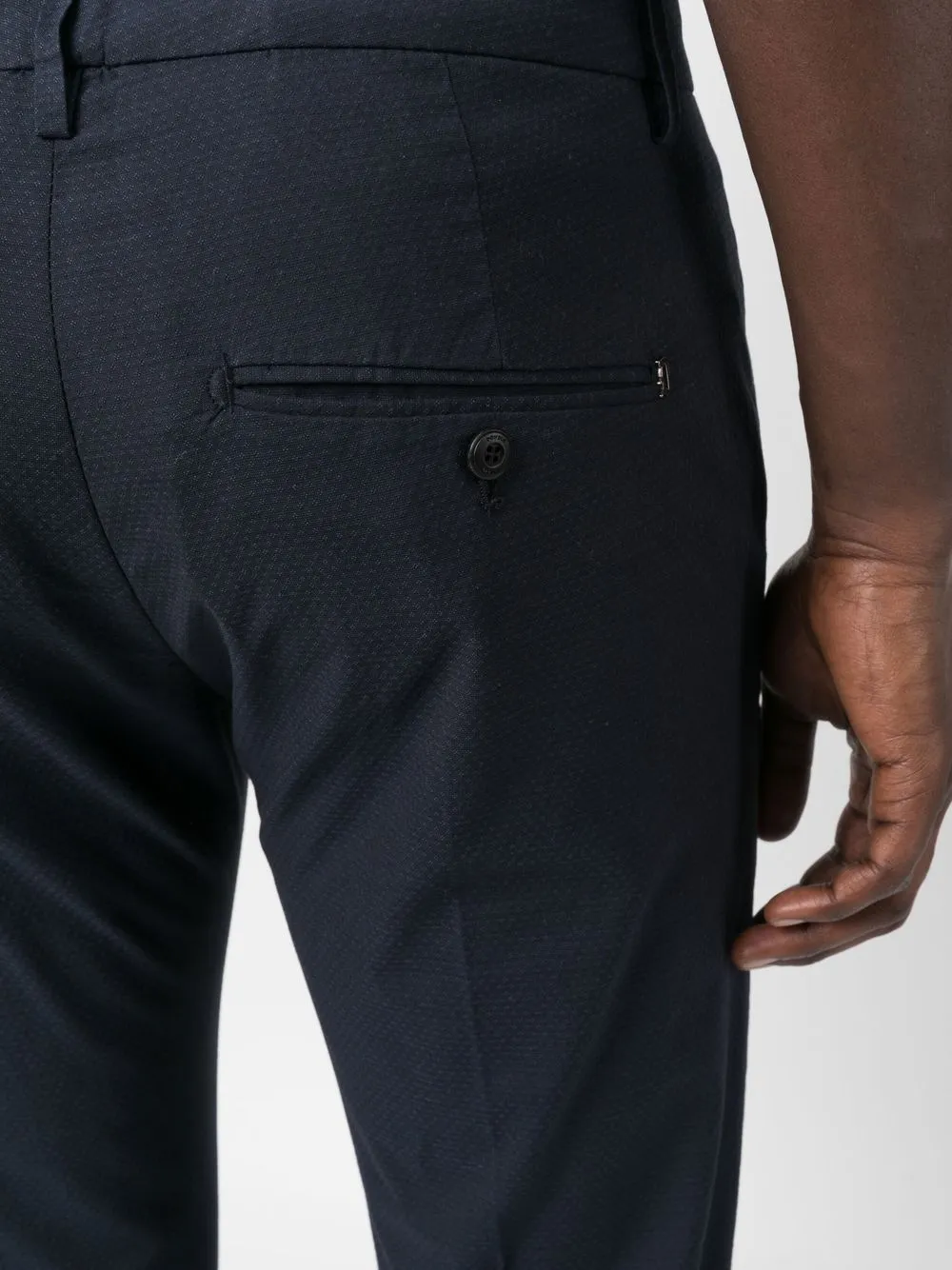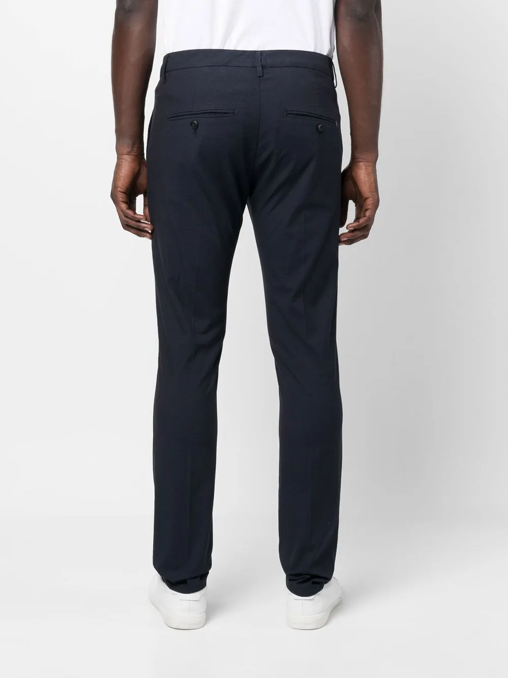 Marineblau, Gürtelschlaufen, Haken- und Reißverschluss, zwei Eingrifftaschen an der Seite, zwei Gesäßtaschen mit Knopfverschluss, gerades Bein.
