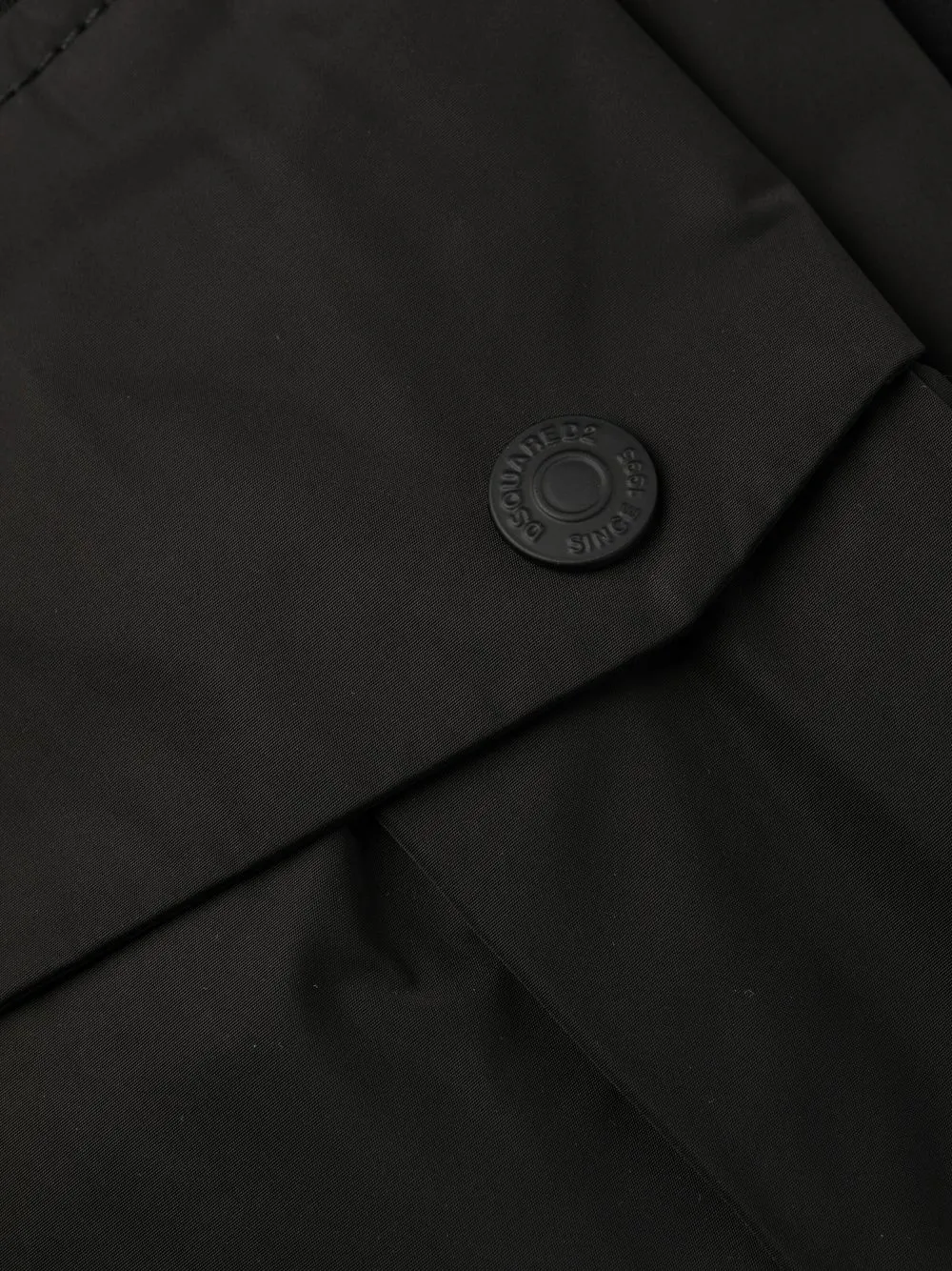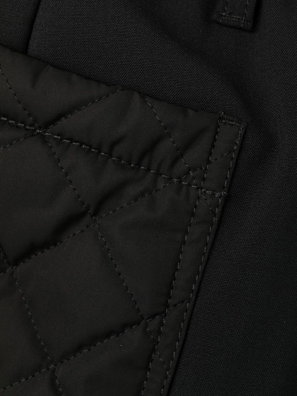 Gesteppte Einsätze, Gürtelschlaufen, Knopf- und Reißverschluss vorne, zwei Eingrifftaschen an der Seite, zwei Cargotaschen an der Seite, zwei aufgesetzte Gesäßtaschen.
