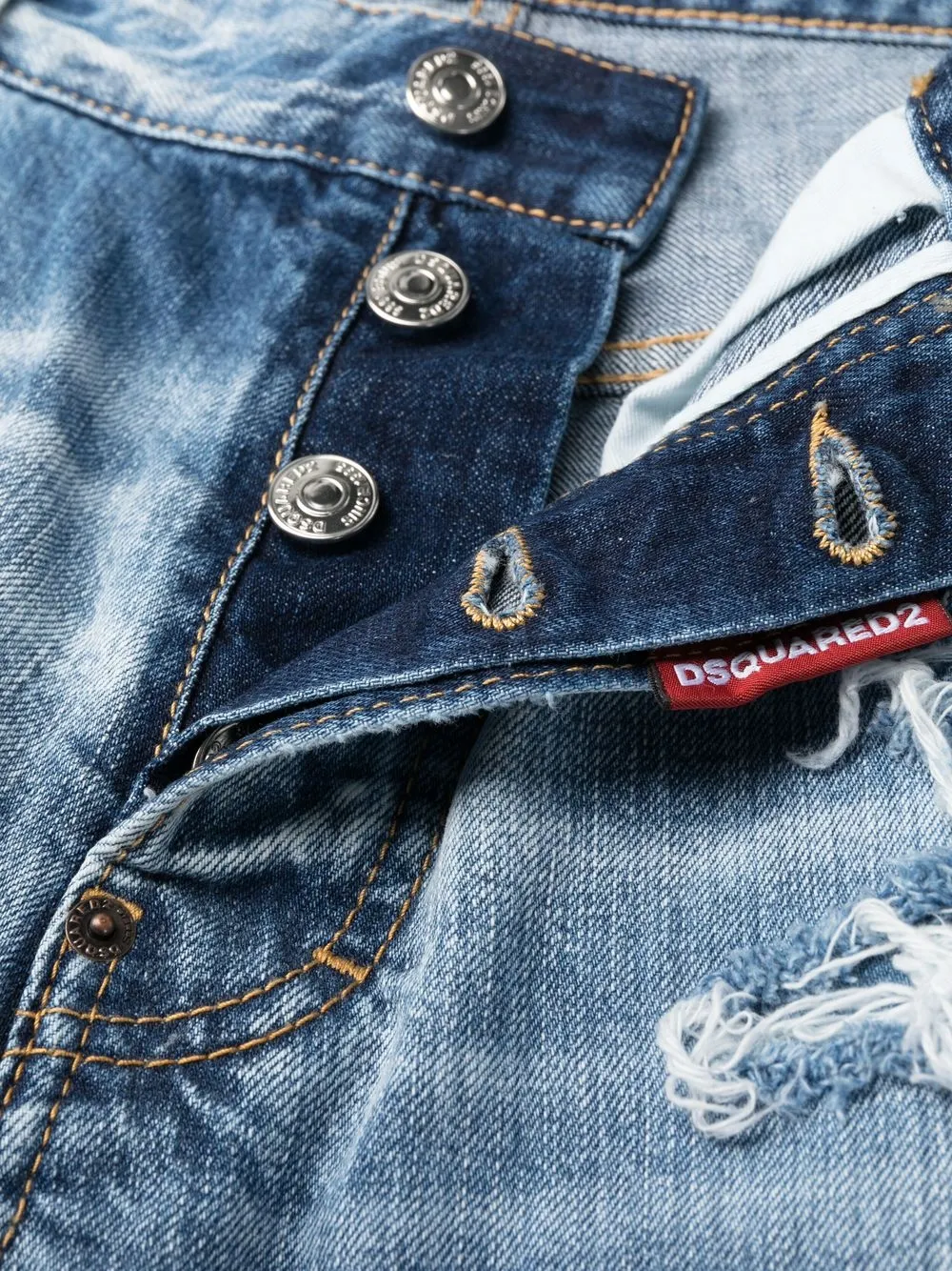 distressed straight-leg jeans from DSQUARED2 featuring blue, cotton, distressed effect, front button fastening, belt loops, bleached effect and classic five pockets.