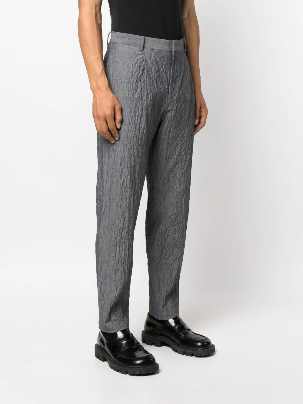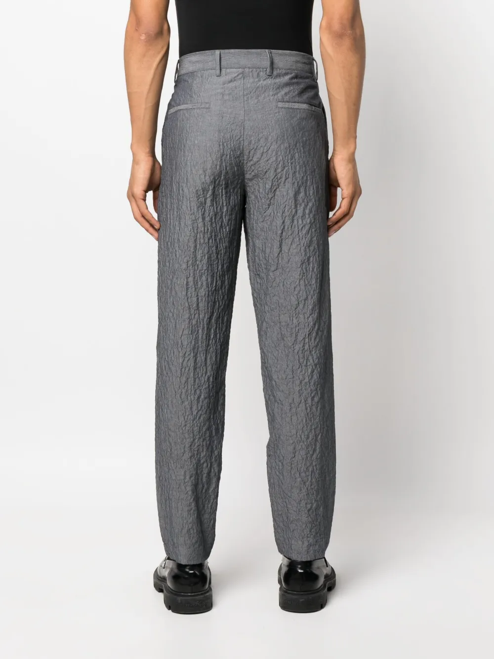 Knitteroptik, Gürtelschlaufen, verdeckter Verschluss vorne, mittlere Taille, Tapered-Bein, zwei Eingrifftaschen an der Seite, zwei eingefasste Gesäßtaschen.