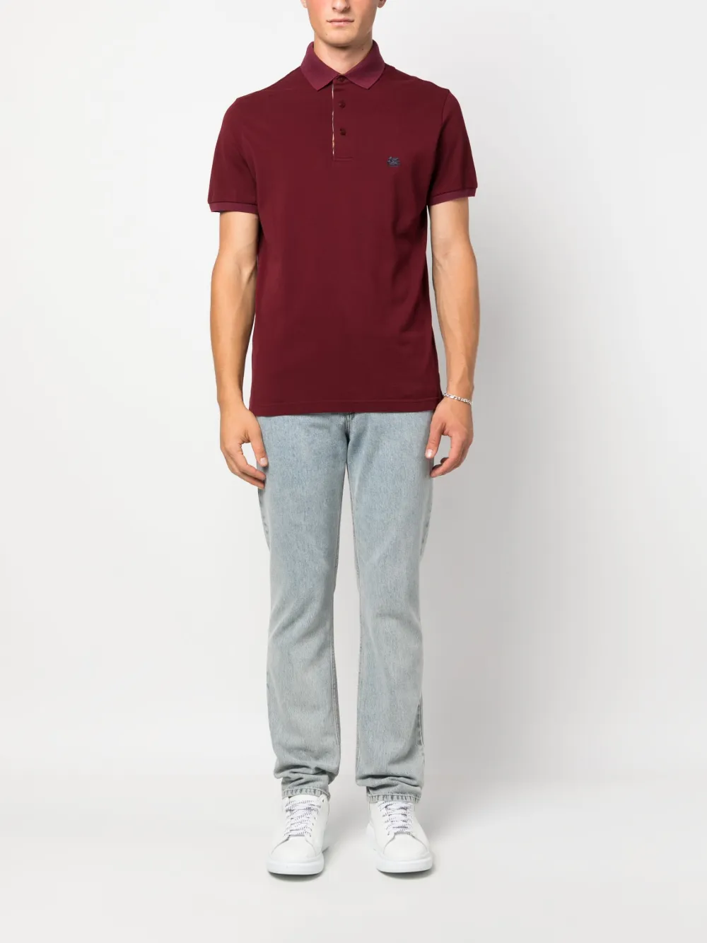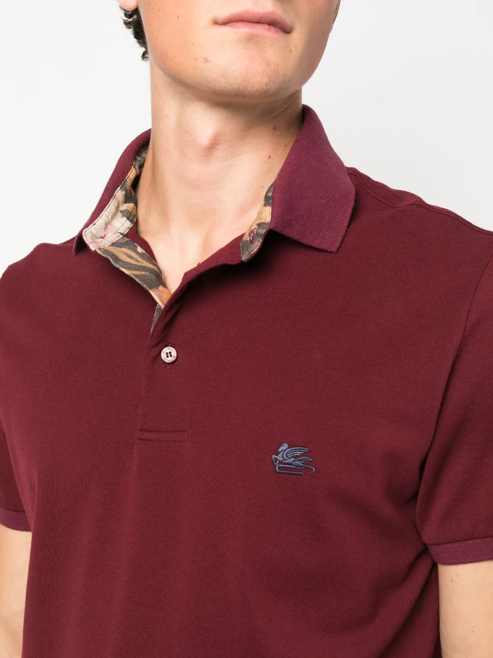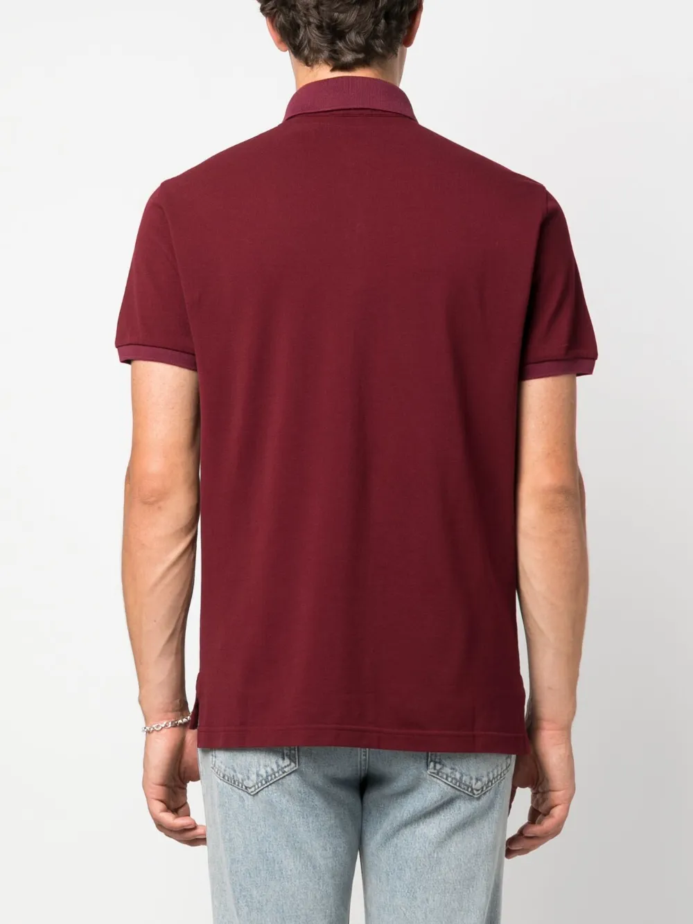 Bordeauxrot, Baumwolle, Logo-Stickerei an der Brust, Poloshirtkragen, Knopfleiste vorne, kurze Ärmel, gerader Saum.