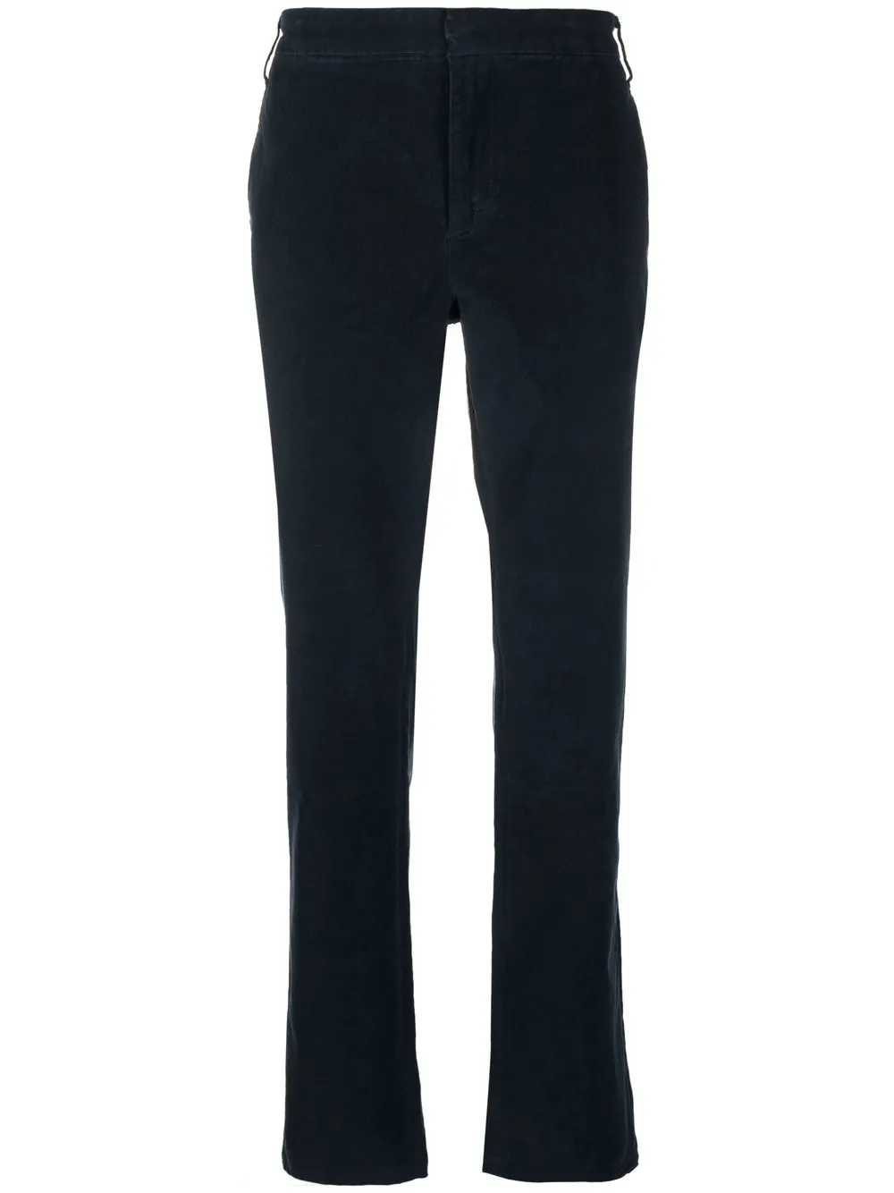 Verdeckter Verschluss vorne, zwei Eingrifftaschen an der Seite, zwei eingefasste Gesäßtaschen.